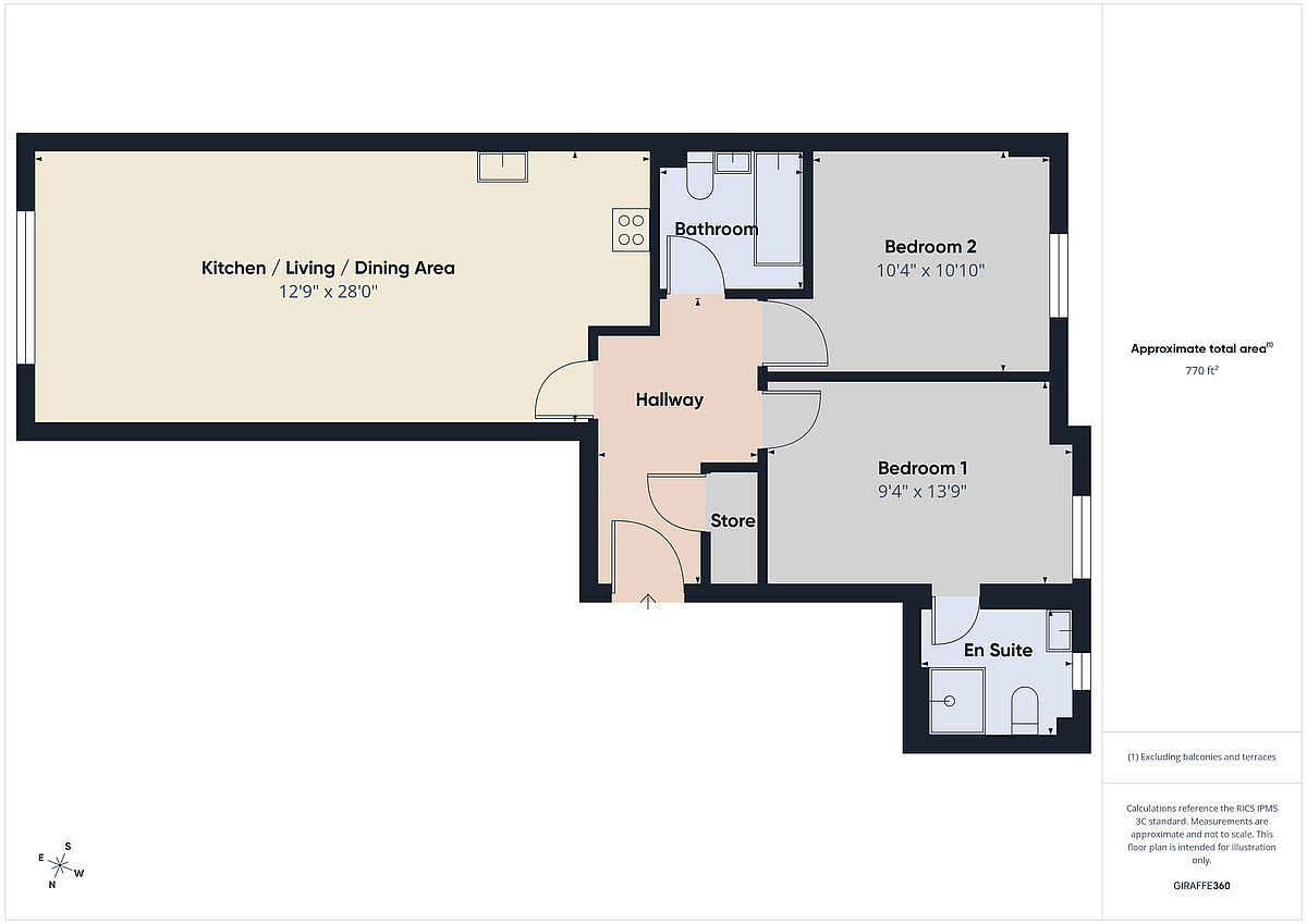 SPACIOUS KITCHEN / LIVING / DINING AREA 28' 0" x 12' 9" (8.53m x 3.89m) Range of high and low level units with drawers and complementary work surfaces; four ring electric hob and under oven; integrated fridge / freezer; integrated washer / dryer; sink unit and side drainer; built-in gas boiler (newly installed in July 2024).