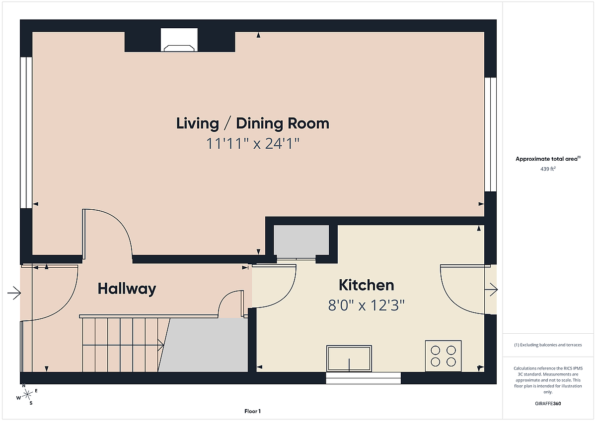 LIVING / DINING AREA 24' 1" x 11' 11" (7.34m x 3.63m) Feature cast iron stove; solid wood floor.