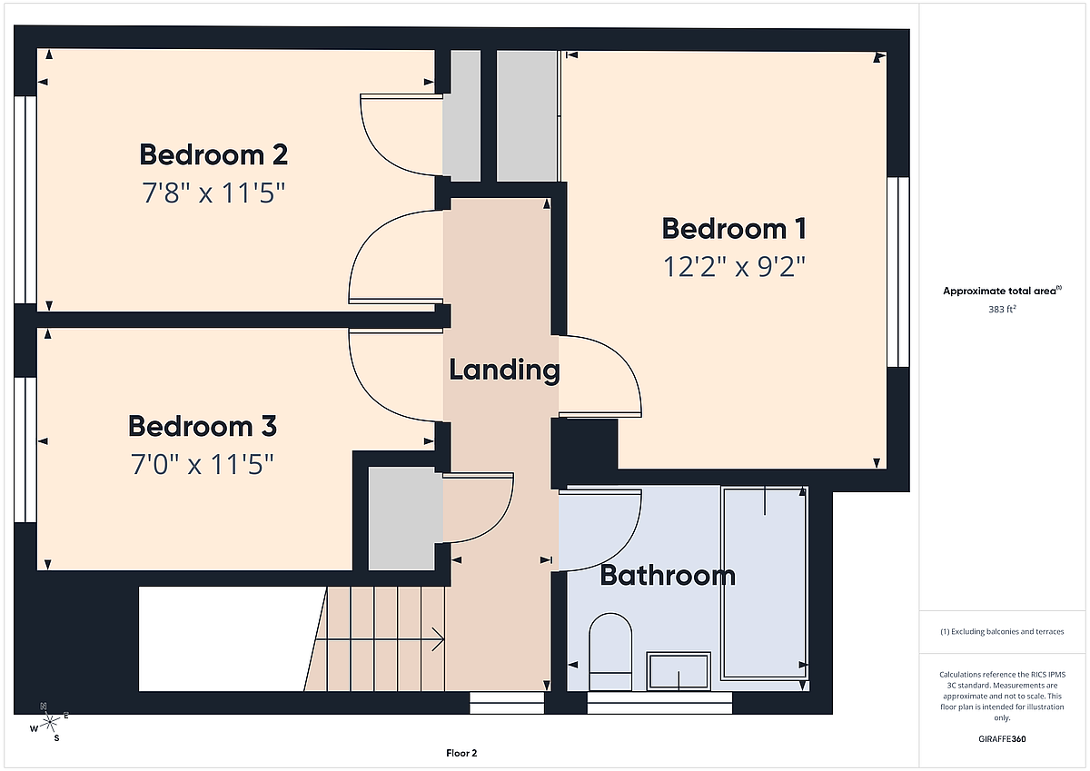 BEDROOM 2 11' 5" x 7' 8" (3.48m x 2.34m) Built-in wardrobe.
