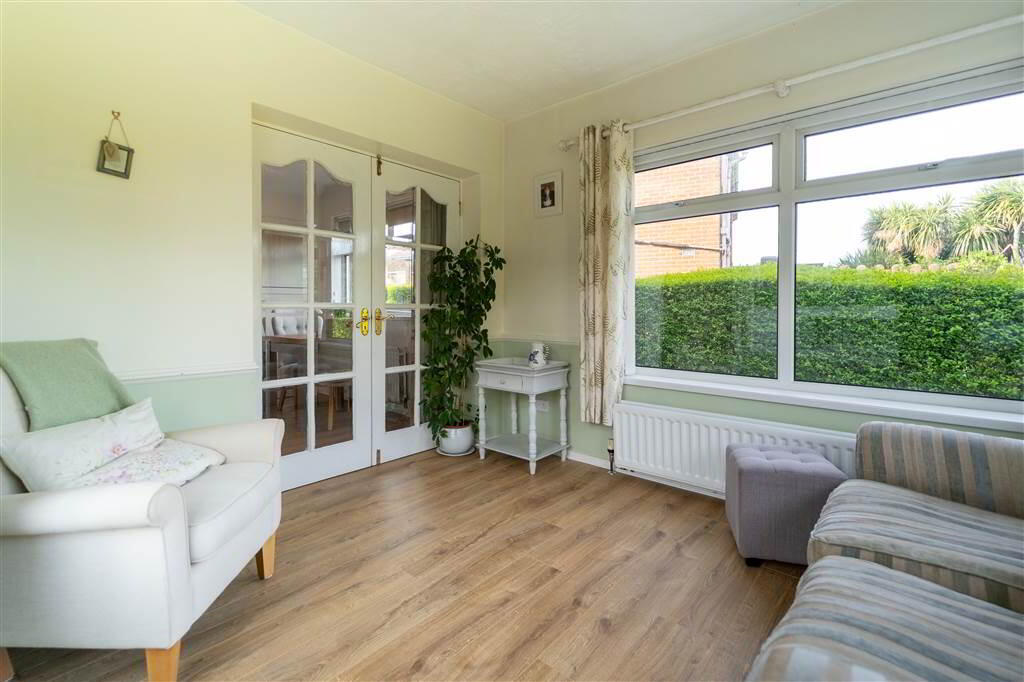 Rear aspect Reception, with views over the garden, accessed via double doors from the Kitchen / Dining. Complete with laminate wooden flooring.