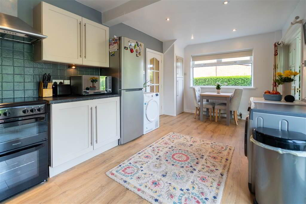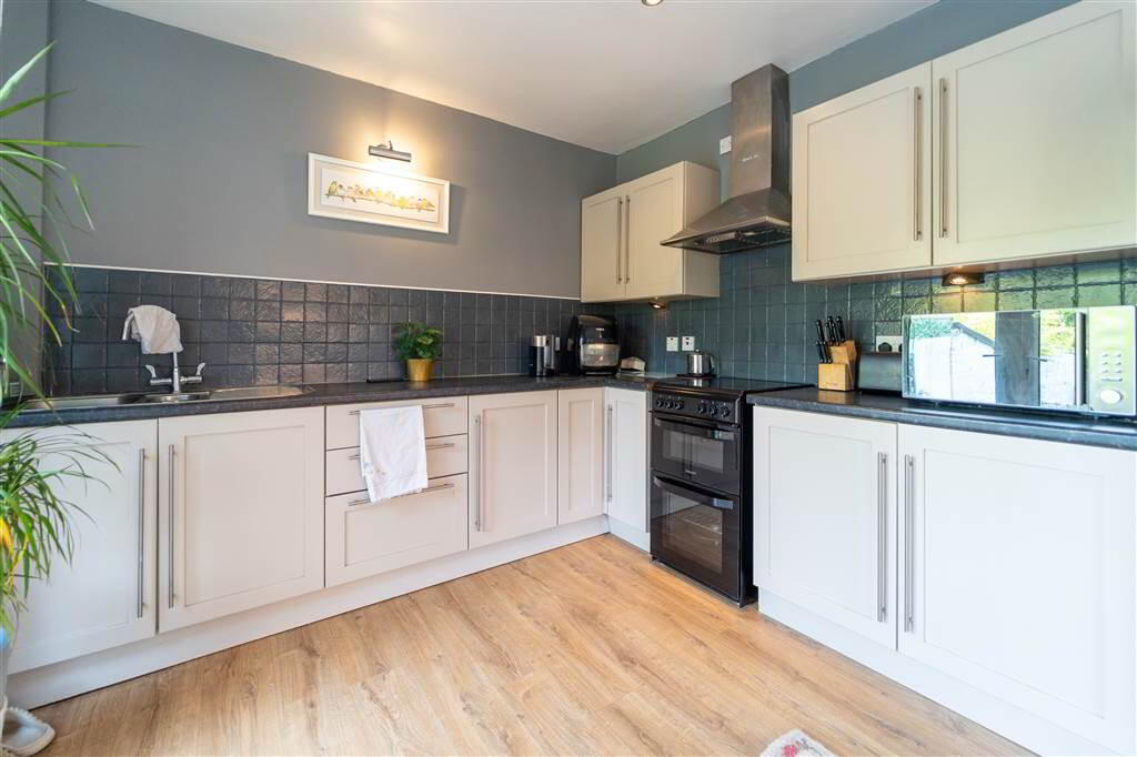 Fitted ‘Shaker’ style Kitchen with a range of high and low level units and complimentary Laminate Roll-Edge Worktops. Complete with Laminate Wooden Flooring, Patio Doors to the Rear Garden and opens to provide space for dining. - SUN ROOM: