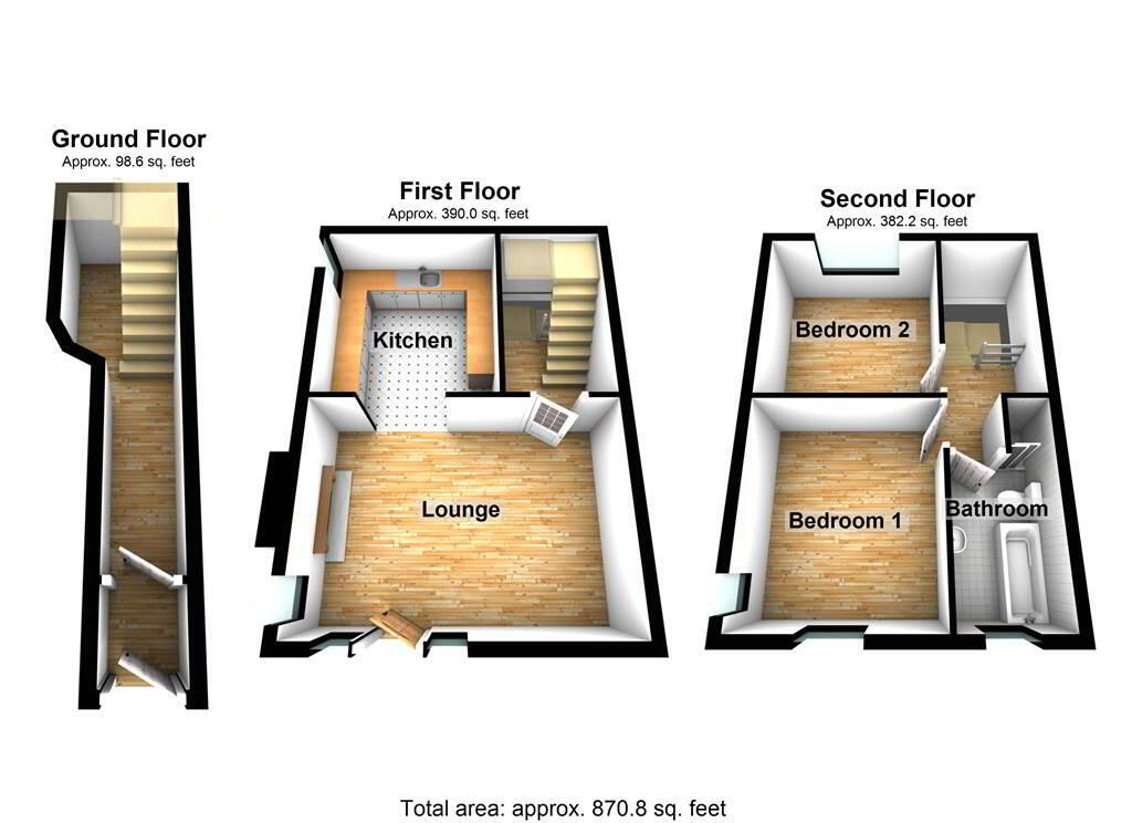 - 3.28m x 3.15m (10' 9" x 10' 4")Fitted Kitchen with an excellent range of high and low level units with complimentary Worktops. Complete with Laminate Wooden Flooring.