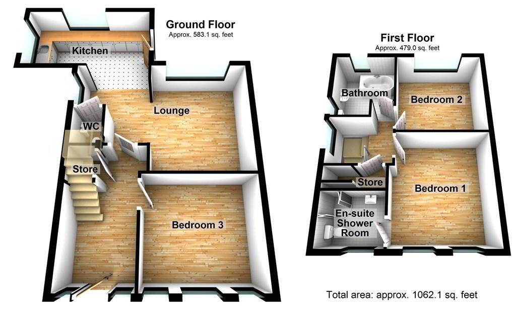Three Bedrooms (Two First Floor & One Ground Floor)