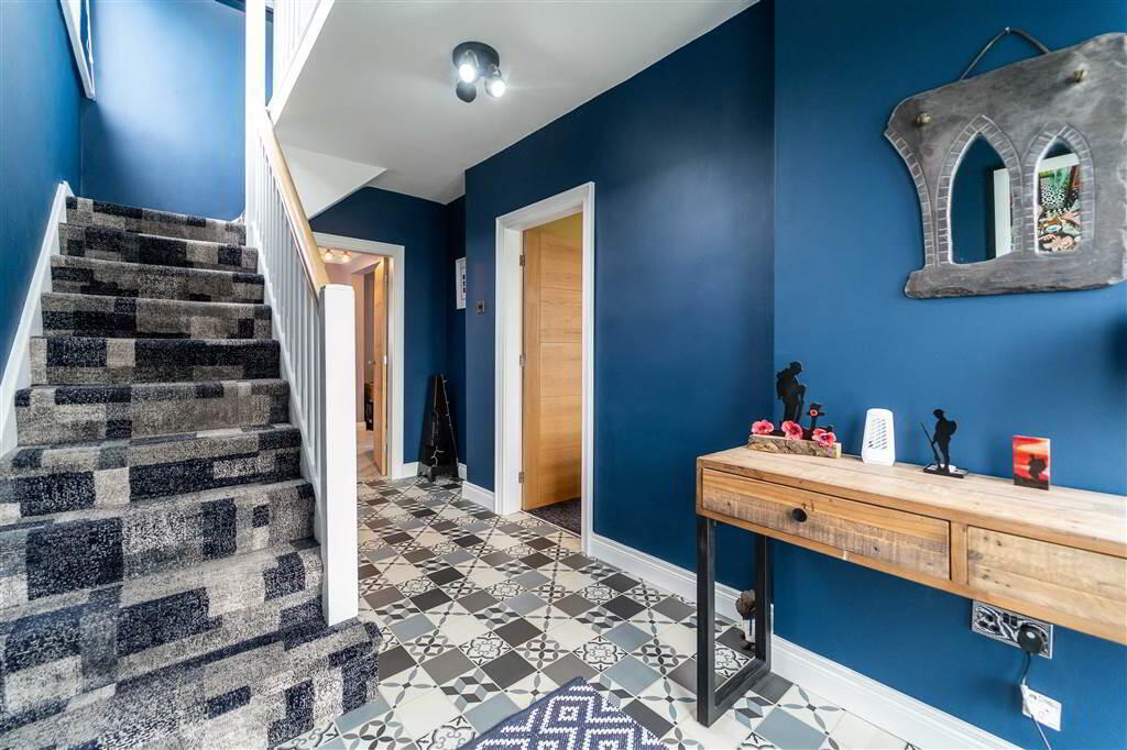 - Composite door with double glazed central panel and complimentary double glazed side panels leading into the bright and airy Entrance Hall.