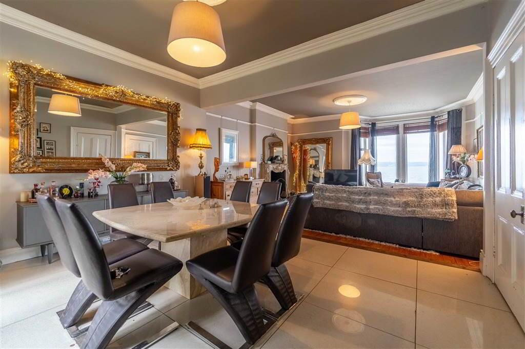 - 5.56m x 4.6m (18' 3" x 15' 1")Spacious front aspect Reception Room leading into a Bay Window with stunning views over Belfast Lough and beyond. The Reception Room is complete with Solid Wooden Floor, traditional ceiling cornicing, ceiling rose, picture rail and a feature Stone Surround Fireplace. Open Plan to Dining Room.