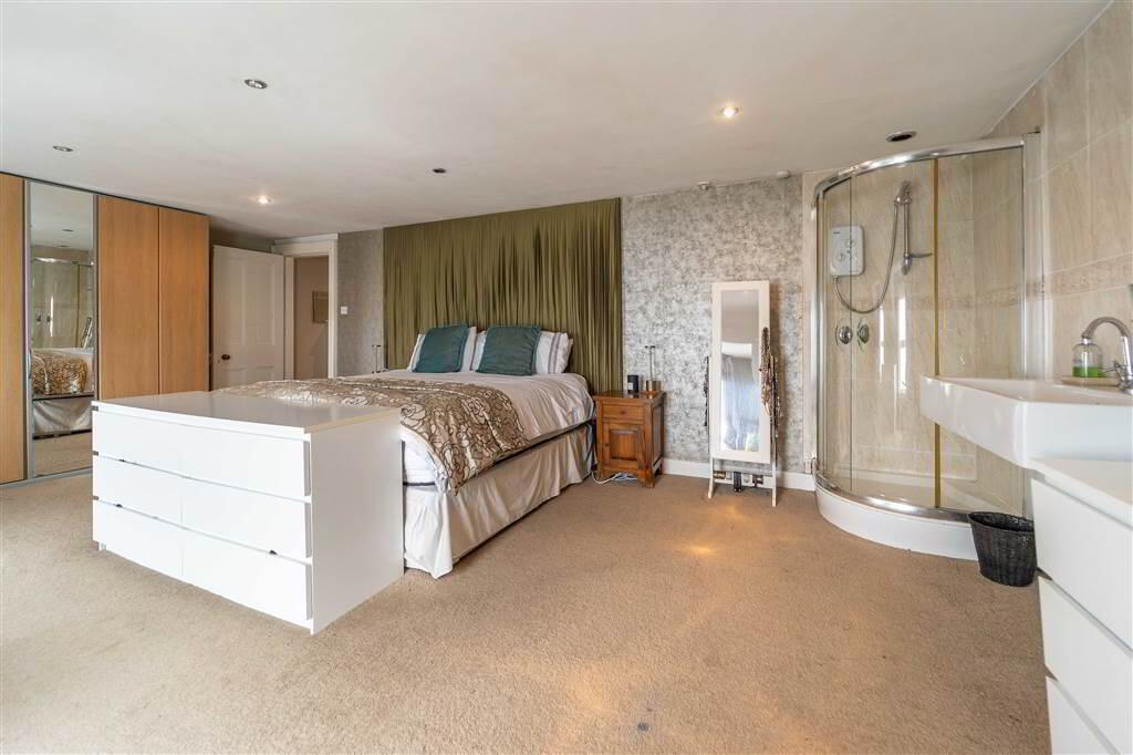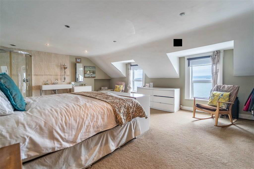 - 6.58m x 4.57m (21' 7" x 15' 3")Spacious front aspect double Bedroom, enjoying the frontage width of the Property, with multiple windows enjoying the stunning views over Belfast Lough and beyond. This Bedroom features a tiled Shower Cubicle with Electric Shower Unit and a wall-mounted Wash Hand Basin.