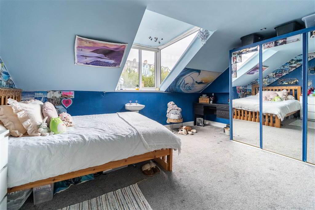 - 3.84m x 3.43m (12' 7" x 11' 3")Rear aspect double Bedroom with a panoramic southerly Dormer Window creating a bright environment. Pedestal Wash Hand Basin.