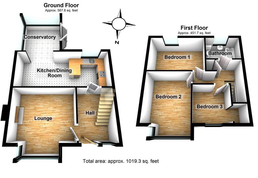 The Ground Floor comprises a lounge with a feature Cast Iron Stove and a Box Bay Window, a modern fitted Kitchen with space for Dining and a spacious Conservatory open plan off the Dining Area.