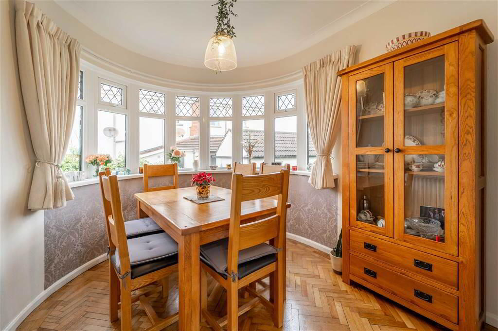 - 3.15m x 2.72m (10' 4" x 8' 11")Accessed via the Lounge and the Kitchen ideal for use as a Dining Room. Complete with Herringbone Wooden Floor continued from the Lounge and leads into a feature Bow Bay Window.