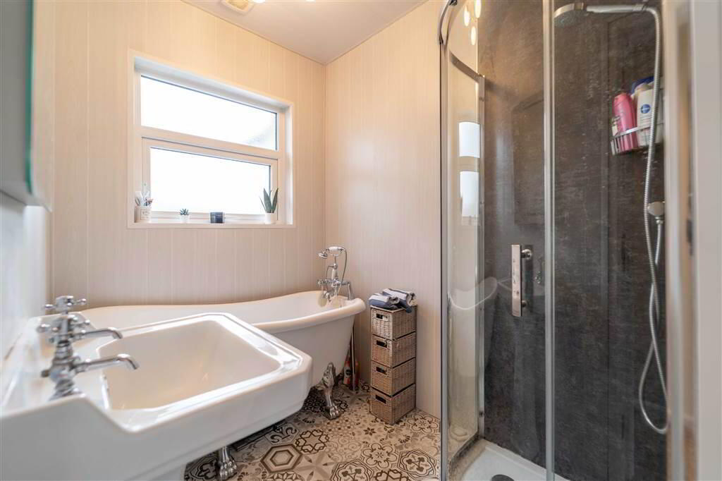 - 2.72m x 1.52m (8' 11" x 5' 5")Deluxe fitted Bathroom with a traditional styled three-piece suite comprising a Pedestal Wash Hand Basin, a Free-Standing Bath with telephone hand shower and a Corner Shower Cubicle with Mains Shower. Complete with PVC Panel Walls.