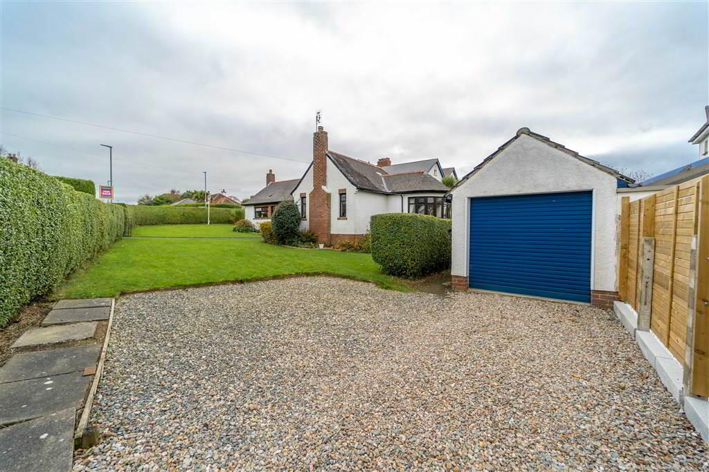 - Sitting on a large corner site, this Property enjoys a spacious hedge lined Lawn Garden to the front and side. A loose stone driveway provides off-road parking and access to the Detached Garage.