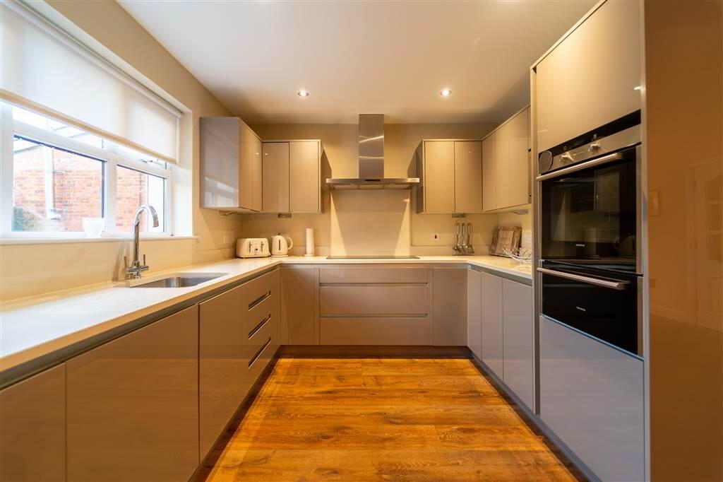 - 2.9m x 2.31m (9' 6" x 7' 7")Modern fitted Kitchen with an excellent range of high and low level units with complimentary Stone Worktops. Range of integrated appliances include an ‘eye-level’ Oven with Warming Drawer beneath, a Microwave, a Dishwasher and a Fridge / Freezer. Complete with Laminate Wooden Flooring. Open Plan to Dining Area.
