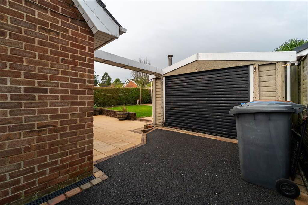 - FrontThere is a Garden in Lawn and a Tarmac Driveway providing ample off -Street Parking leading to the Detached Garage.RearThere is a private Fence and Hedge enclosed Garden in Lawn and a Patio Area. Complete with access to the detached Garage.Detached Garage (20’ 01’’ x 12’ 00’’)Dual access via an up and over Door to the front and separate side Door for pedestrian access. Complete with plumbing for a Washing Machine, Light and Power.