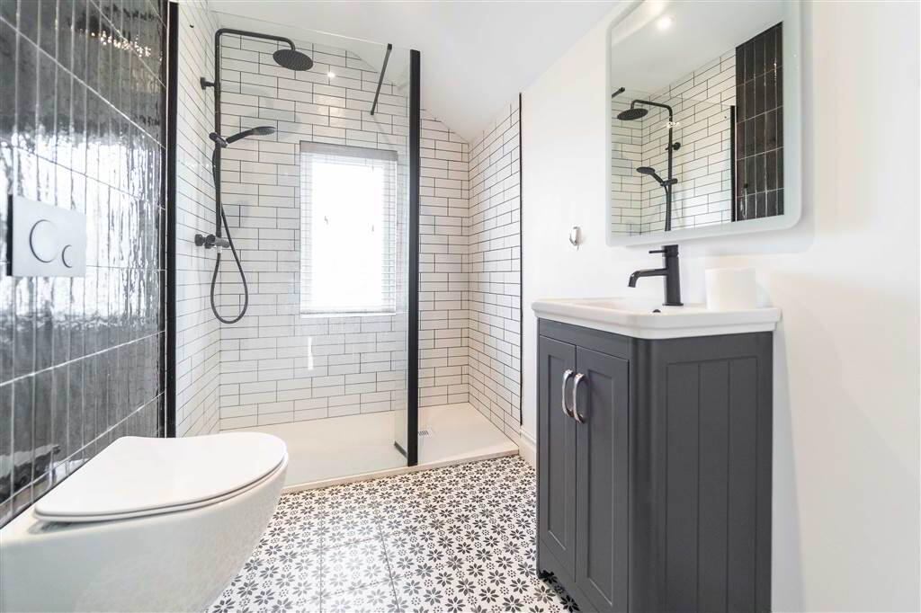 - 2.72m x 1.57m (8' 11" x 5' 2")Newly fitted contemporary style Shower Room with a three-piece Suite comprising a walk-in Mains Rainfall Shower, a Low Flush W.C. a Sink with Storage under, a heated Towel Rail, an Extractor Fan and recessed Spotlights. Complete with Tiled Flooring and part Tiled Walls.