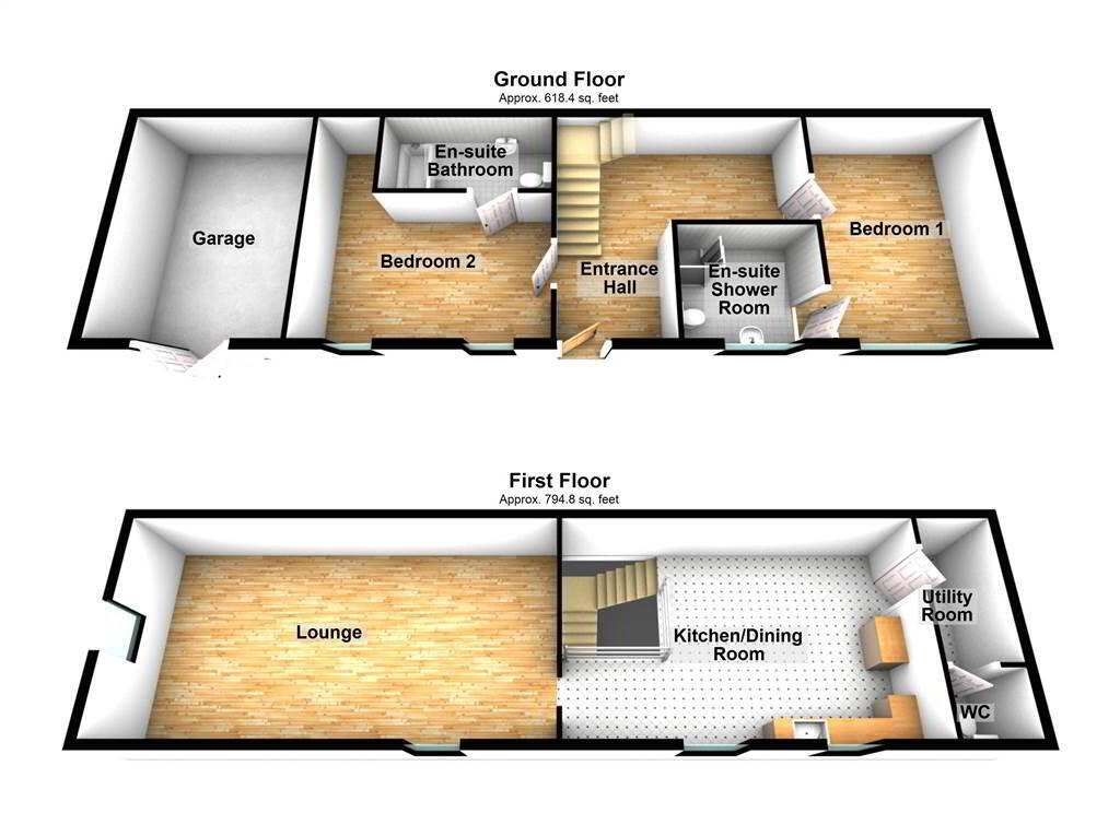 Two Ground Floor Double Bedrooms each with respective Ensuite Bathroom & Shower Room