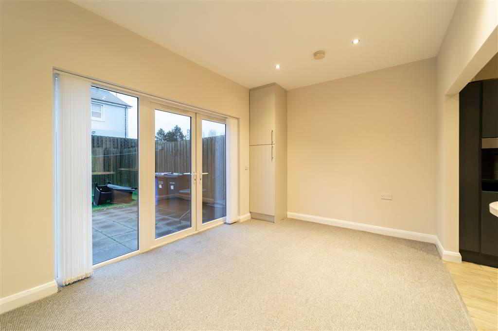 Modern fitted Kitchen, connecting the Lounge and Dining Room, with a range of high and low level Gloss Units with complimentary Laminate Worktops. Integrated Appliances include an ‘eye-level’ Oven, a Hob, a Dishwasher, a Washing Machine, a Fridge / Freezer and a Stainless-Steel Sink Unit. Complete with tiled flooring. - DINING ROOM: