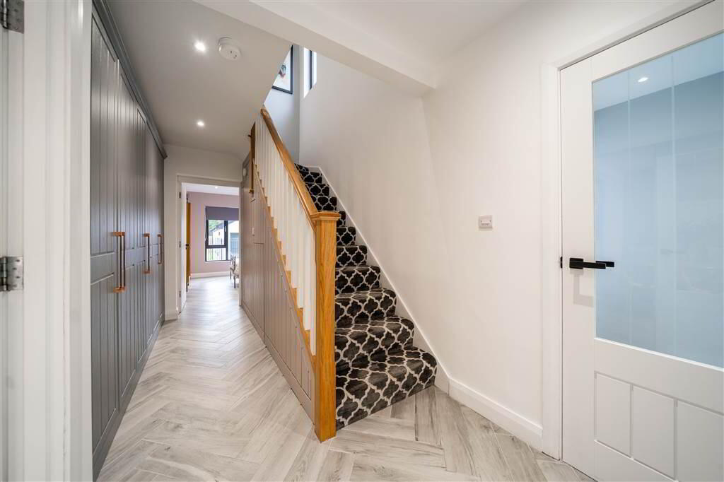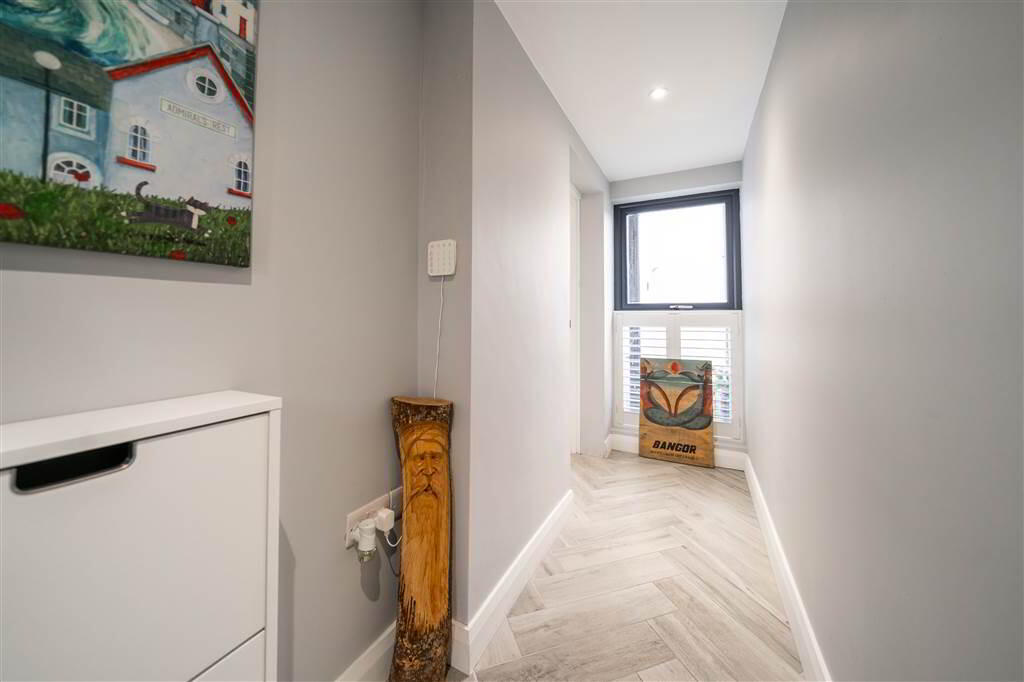 Access via a Composite and double-Glazed Door, complete with Herringbone Tiled Flooring and recessed Spotlights. - REAR HALLWAY: