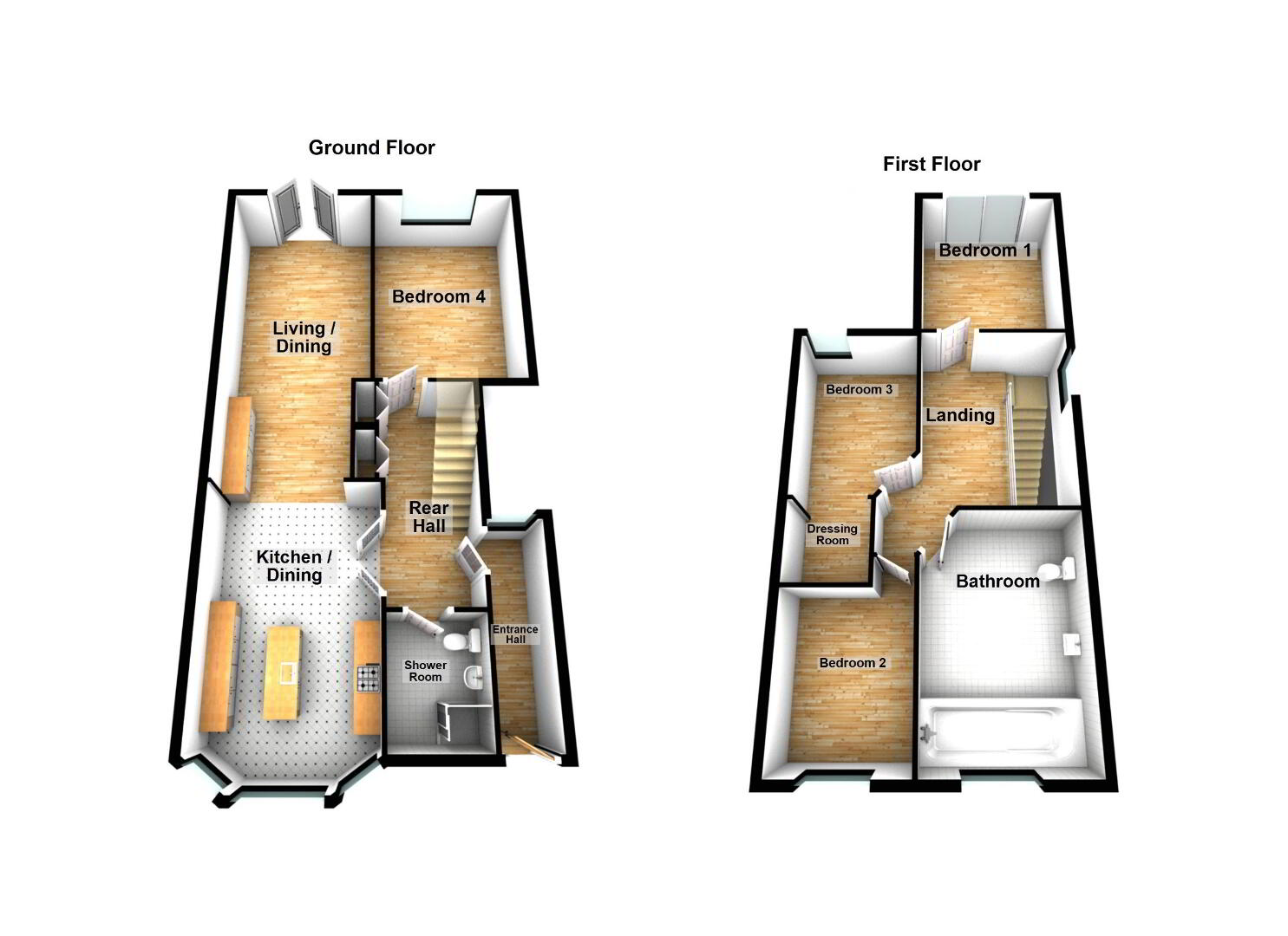 Internally, with a total area of approximately 1,600 square feet, accommodation comprises of four well-proportioned Bedrooms (one on the ground floor), a Luxury Fitted Kitchen through to the Living and Dining Room, a ground Floor Shower Room Suite and a first floor Bathroom Suite.
