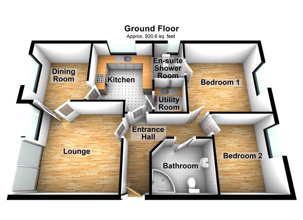 Internally, with a total area of approximately 950 sqft, accommodation comprises of two Reception Rooms (the Principal Lounge with Balcony access), a fitted Kitchen with a range of integrated appliances and Utility Room access, two Double Bedrooms (with an Ensuite Shower Room to the Principal Bedroom) and a spacious Bathroom.