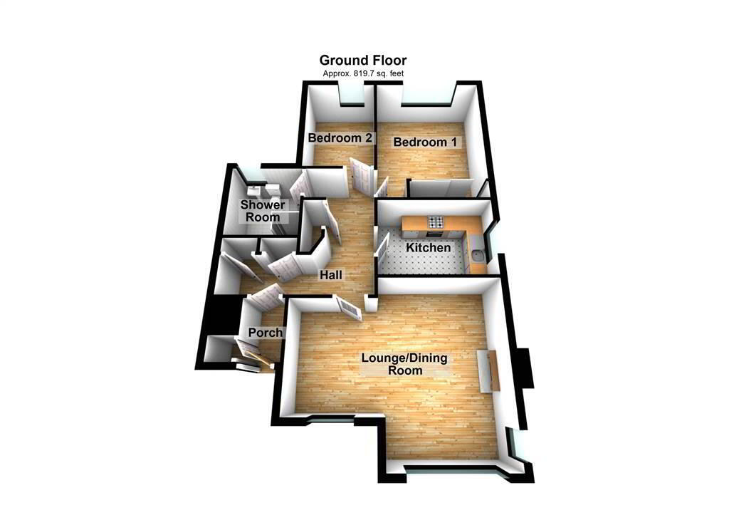 Total Internal Area Approx 820 sqft