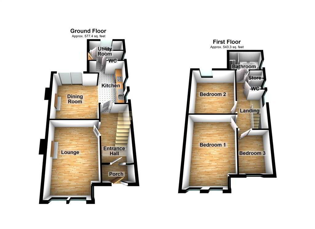 The First Floor comprises of three well-proportioned Bedrooms, a contemporary styled Bathroom and a separate W.C..