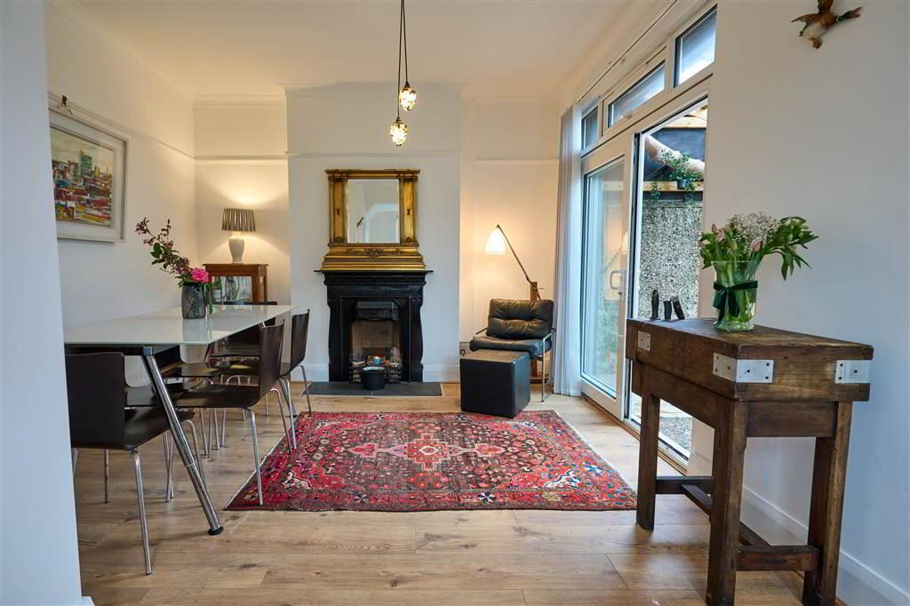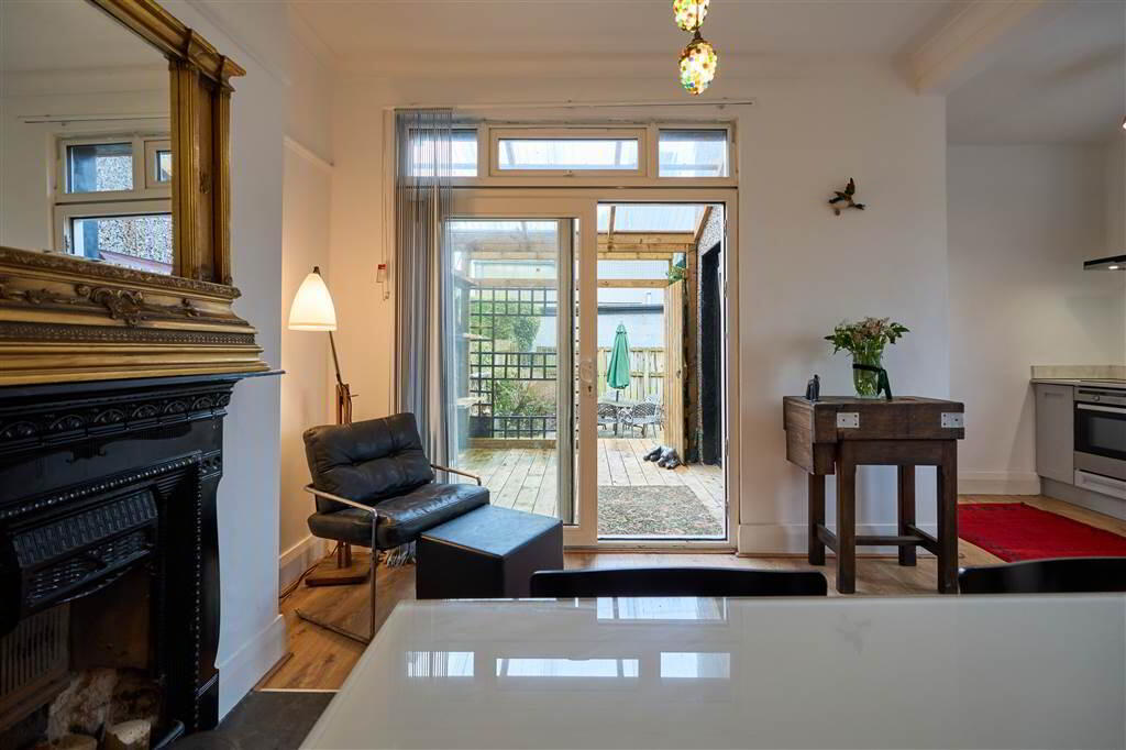 Rear aspect Reception Room, open plan off the Kitchen, with a feature traditional Cast Iron Fireplace and complete with Wooden Flooring. Sliding doors lead onto the Rear Decking and in turn to the Rear Garden. - KITCHEN: