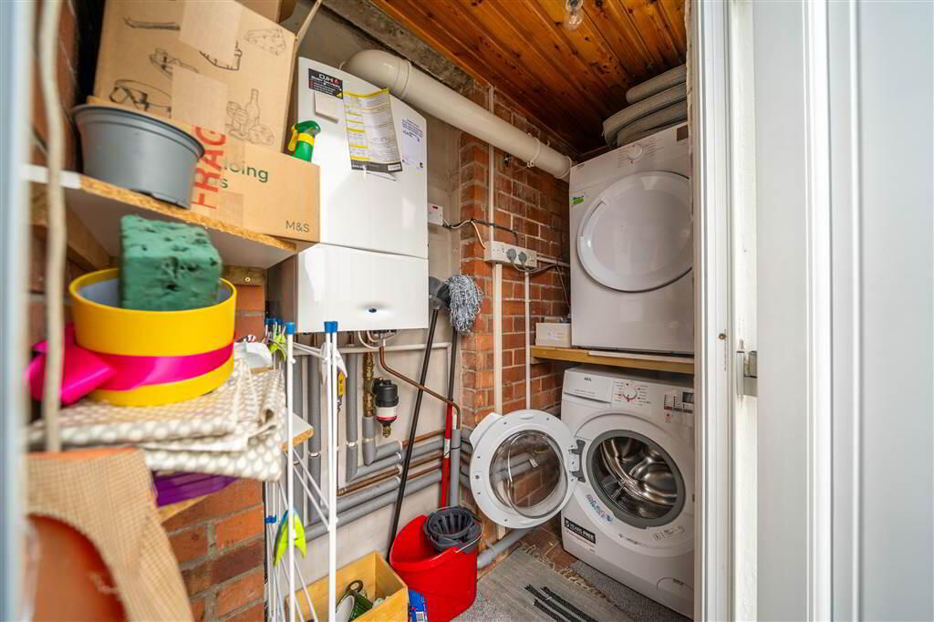 Externally, to the rear there is a south facing enclosed garden which has been thoughtfully landscaped and laid out to offer a number of individual areas to relax or entertain. Areas include an elevated brick paved Patio, accessed from the dining area, leading to a lower Patio and a lawn garden lined with mature shrubs and bushes.