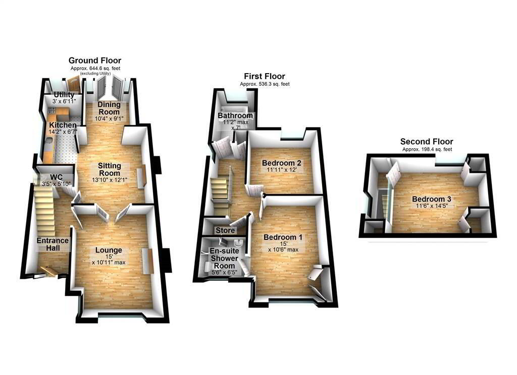 Three Double Bedrooms (Two 1st Floor & One 2nd Floor)