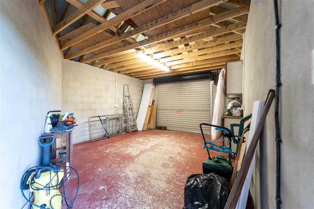 - Front / SideThere is a Wall and Fence enclosed Garden in Lawn and a large driveway providing off-road parking for multiple vehicles and access to the detached Garage.RearThere is a Fence enclosed Garden in loose Stone and access to the detached Garage.Garage (19’ 05’’ x 14’ 02”)Dual access via an Electric Roller Shutter Door to the front and a rear Pedestrian Door. Complete with Light and Power.