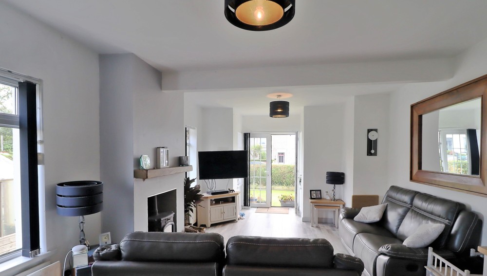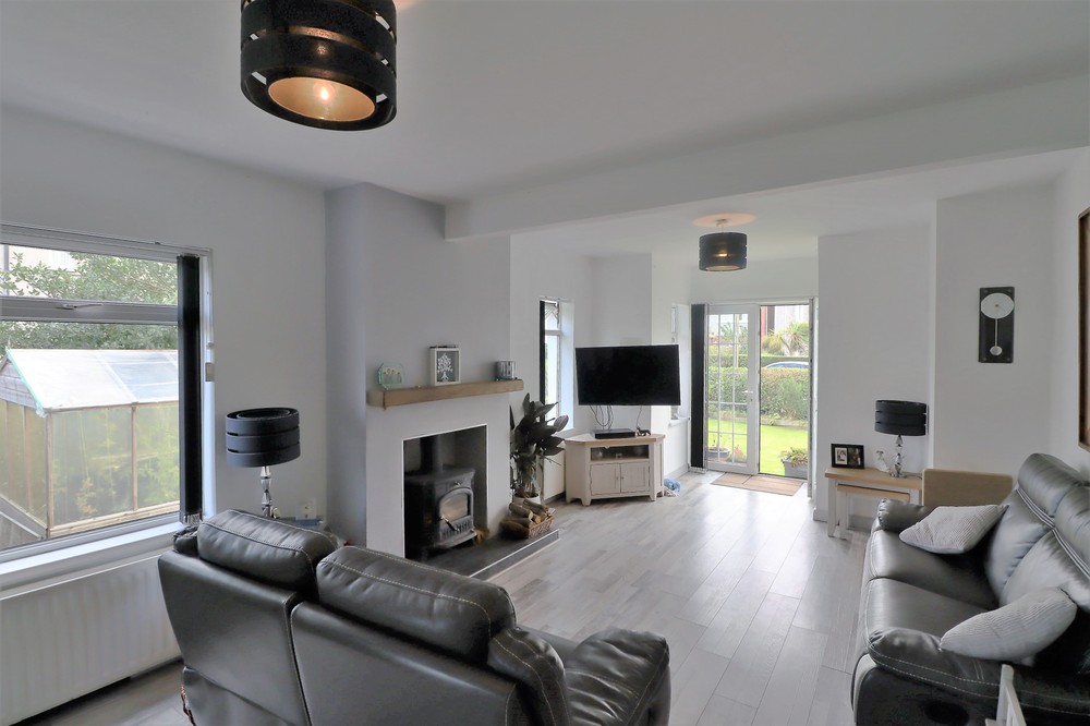 Extensive Lounge with Wood Burning Stove and Double Doors Leading out to Sunny Front Gardens