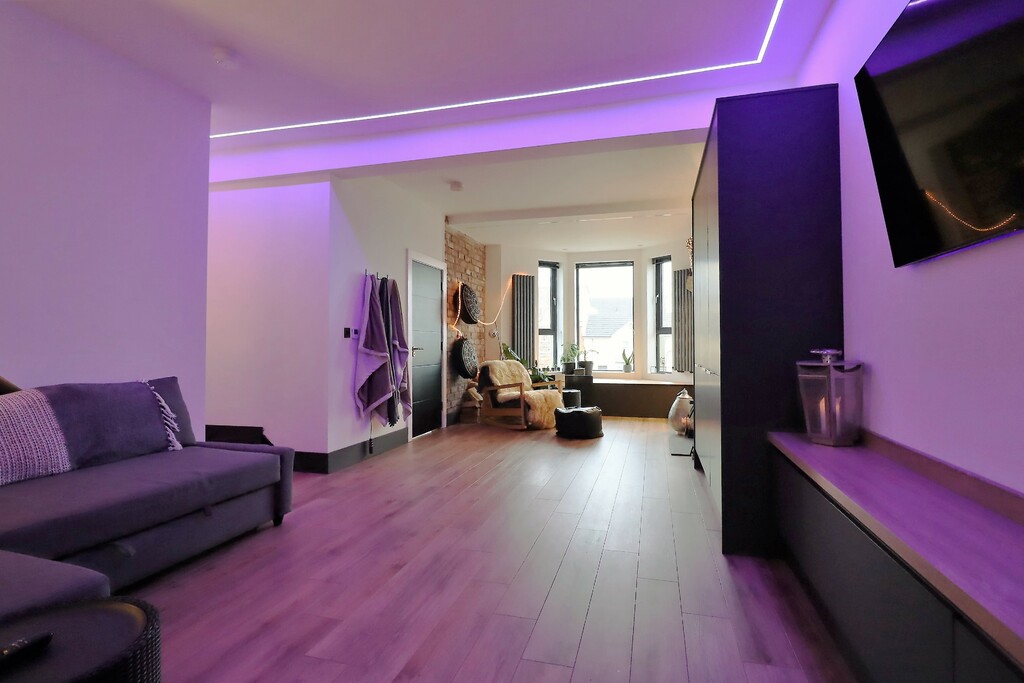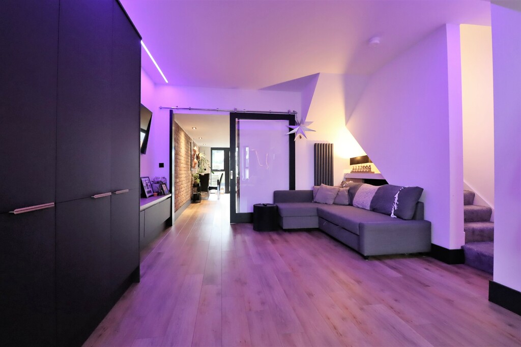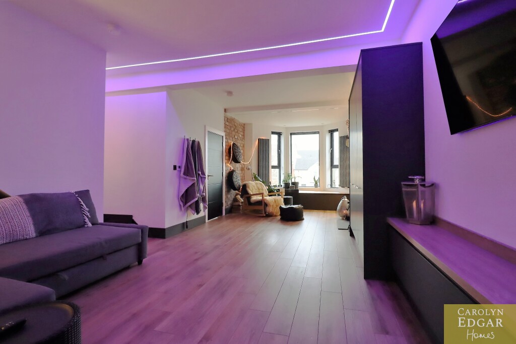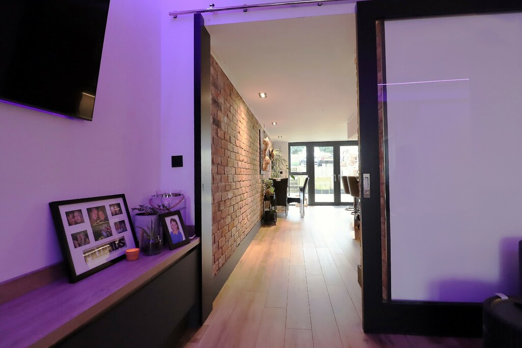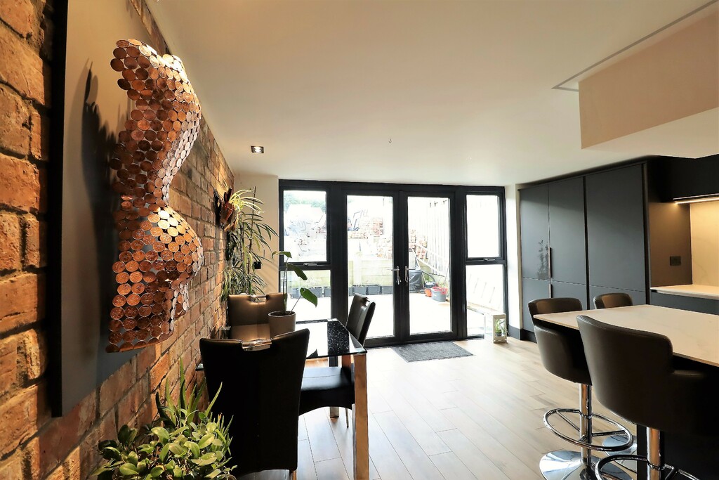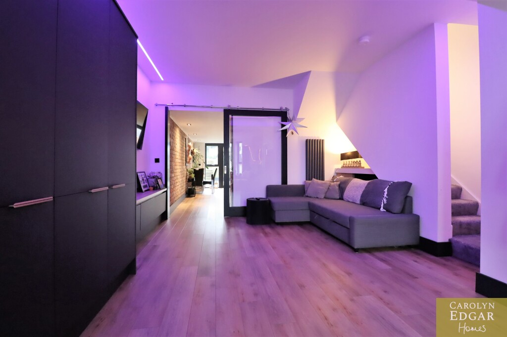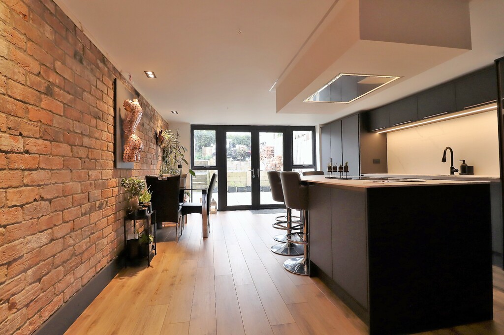 A master class in style and design this outstanding contemporary home had been meticulously renovated by the current owner with no expense or attention to detailed spared. With exposed brick walls, extensive lounge with feature wall mounted wood burner, contemporary luxury open plan kitchen with centre island , bespoke walk in shower room/steam box with access to roof terrace and large master suite on the third floor this one certainly has the wow factor. Only a short stroll from Bangor town centre with its extensive range of shops and coffee houses and Marina, the property is located in a prime residential area and will appeal to those looking for something a little different in this sought after area. Internally the property comprises of entrance hallway with exposed brick walls, downstairs bathroom, extensive lounge with feature wall mounted wood burner, built in storage and window seat and sliding doors opening to the stunning open plan kitchen. Providing both an excellent practical and entertaining space the recently fitted contemporary charcoal Hockley kitchen comes with large centre island with induction hob, integrated appliances, both steam and self-cleaning ovens, handleless rail system, larder fridge, coffee station, ceiling extractor and under floor heating. The French doors lead out to a sunny paved patio area, a great little space to unwind. On the second floor are two double bedrooms, one with feature double loft bed, shower and dressing room and bespoke bathroom with shower room/steam box and access to roof terrace. On the third floor the original two bedrooms were converted into one large and airy master suite with built in robes ( currently in the process of being converted back into two separate bedrooms) Externally the front gardens are currently being reconstructed to provide off street car parking and the good sized rear gardens are south facing providing a low maintenance garden with access for secure car parking.