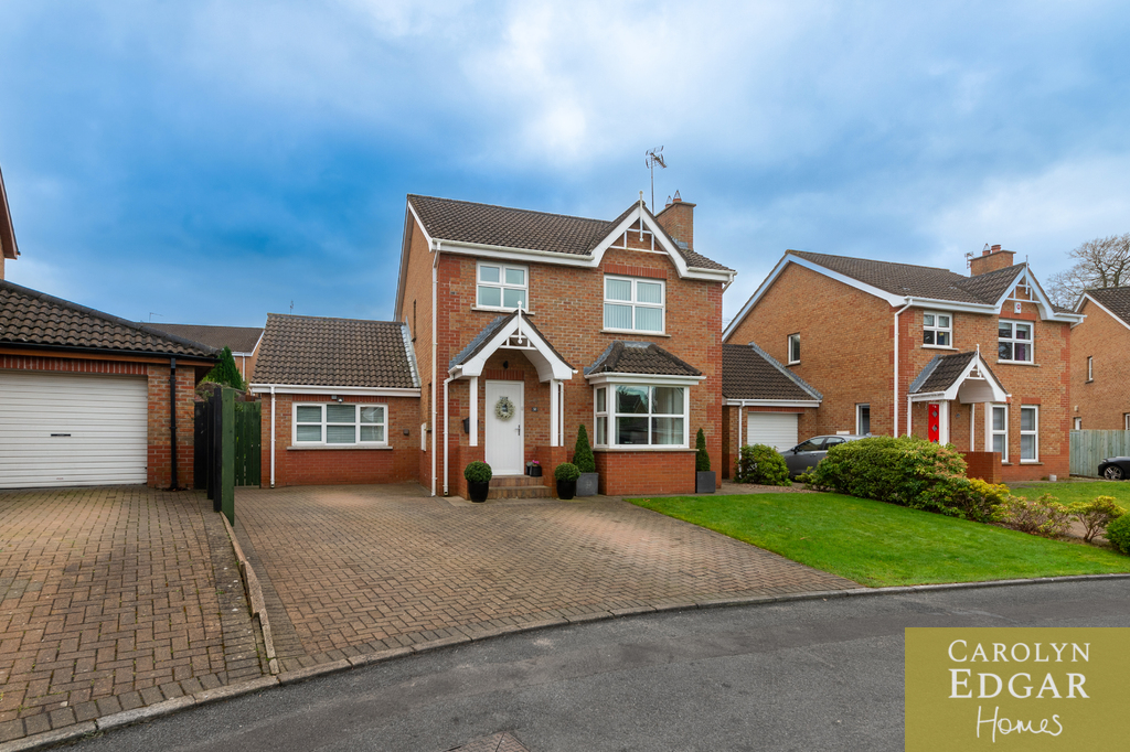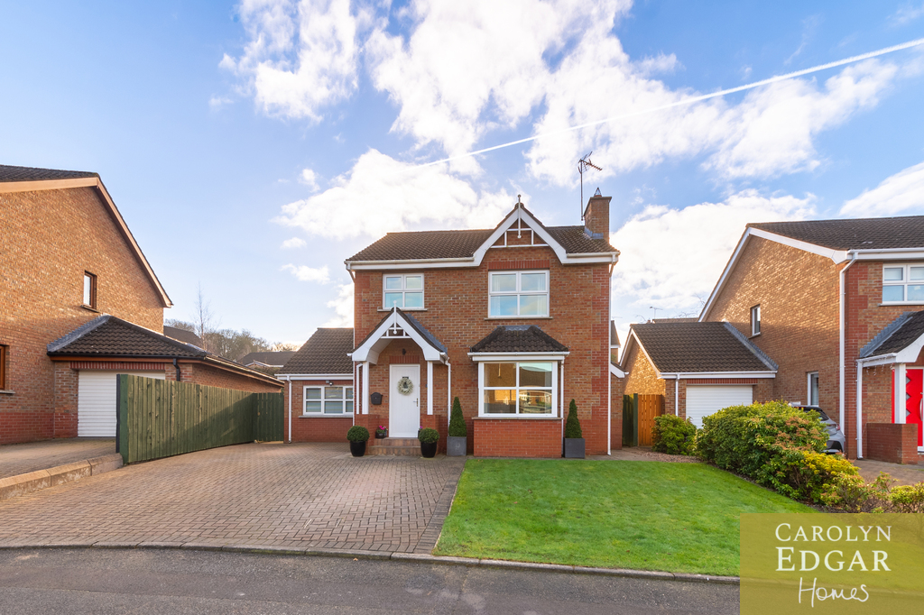 This immaculately presented and spacious detached family home will not disappoint. Impeccably presented throughout this stylish property really has the wow factor and will have huge appeal with its flawlessly presented interior and spacious accommodation throughout making it a perfect readymade home. Located in a quiet cul de sac in this popular residential area the property is situated within close reach of major shops, Bloomfield Retail Park, popular schools, and main transport links. Downstairs comprises of large entrance hallway with double doors leading to the generous stylish lounge with feature open fireplace and dropped ceiling with pelmet lighting. The luxury bespoke kitchen has been designed to the highest standard with many extras features to include Franke instant hot water tap, double self-cleaning oven, handleless soft closing drawers and built in larder, and is open plan to casual dining area and fabulous sunroom providing a quiet and relaxing space with raised vaulted ceiling, floor to ceiling windows and access out the beautifully maintained sunny rear gardens and paved sun terrace. Leading off from the kitchen the modern spacious utility room and family bathroom, with both bath and shower, has been finished to the highest standard providing that much sought after extra space for storage and laundry and convenience. Upstairs there are four beautifully presented double bedrooms all with built in robes and contemporary family bathroom. To the front of the property are well maintained gardens, laid in lawn, brick paviour driveway and perfectly maintained private enclosed rear gardens with paved sun terrace which benefits from sunshine all day, just ideal for entertaining and al fresco dining.