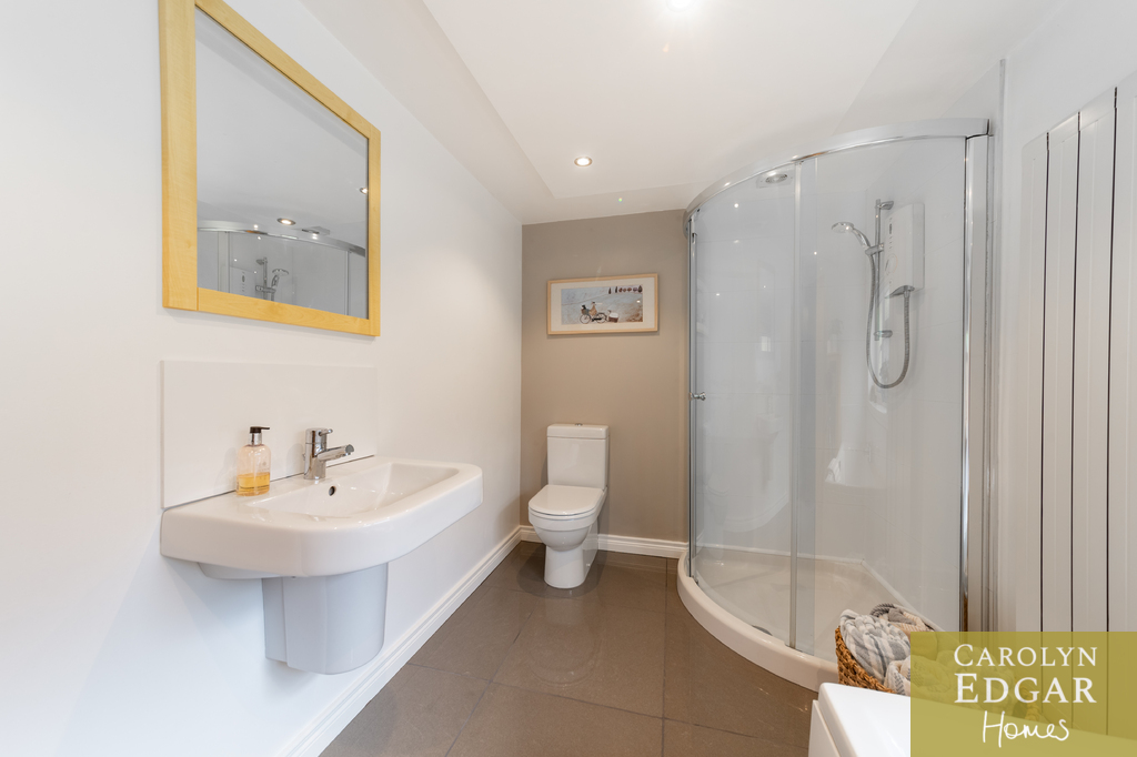 Contemporary Downstairs Bathroom with Bath and Shower