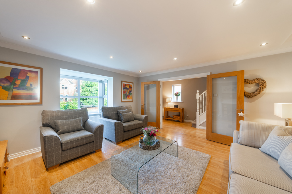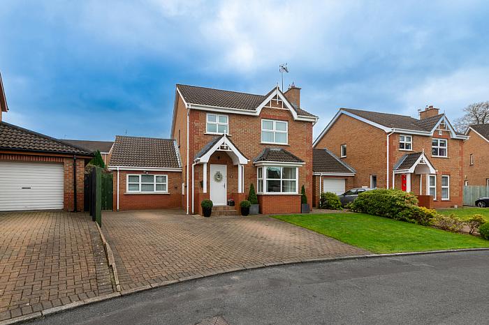 This immaculately presented and spacious detached family home will not disappoint. Impeccably presented throughout this stylish property really has the wow factor and will have huge appeal with its flawlessly presented interior and spacious accommodation throughout making it a perfect readymade home. Located in a quiet cul de sac in this popular residential area the property is situated within close reach of major shops, Bloomfield Retail Park, popular schools, and main transport links. Downstairs comprises of large entrance hallway with double doors leading to the generous stylish lounge with feature open fireplace and dropped ceiling with pelmet lighting. The luxury bespoke kitchen has been designed to the highest standard with many extras features to include Franke instant hot water tap, double self-cleaning oven, handleless soft closing drawers and built in larder, and is open plan to casual dining area and fabulous sunroom providing a quiet and relaxing space with raised vaulted ceiling, floor to ceiling windows and access out the beautifully maintained sunny rear gardens and paved sun terrace. Leading off from the kitchen the modern spacious utility room and family bathroom, with both bath and shower, has been finished to the highest standard providing that much sought after extra space for storage and laundry and convenience. Upstairs there are four beautifully presented double bedrooms all with built in robes and contemporary family bathroom. To the front of the property are well maintained gardens, laid in lawn, brick paviour driveway and perfectly maintained private enclosed rear gardens with paved sun terrace which benefits from sunshine all day, just ideal for entertaining and al fresco dining.