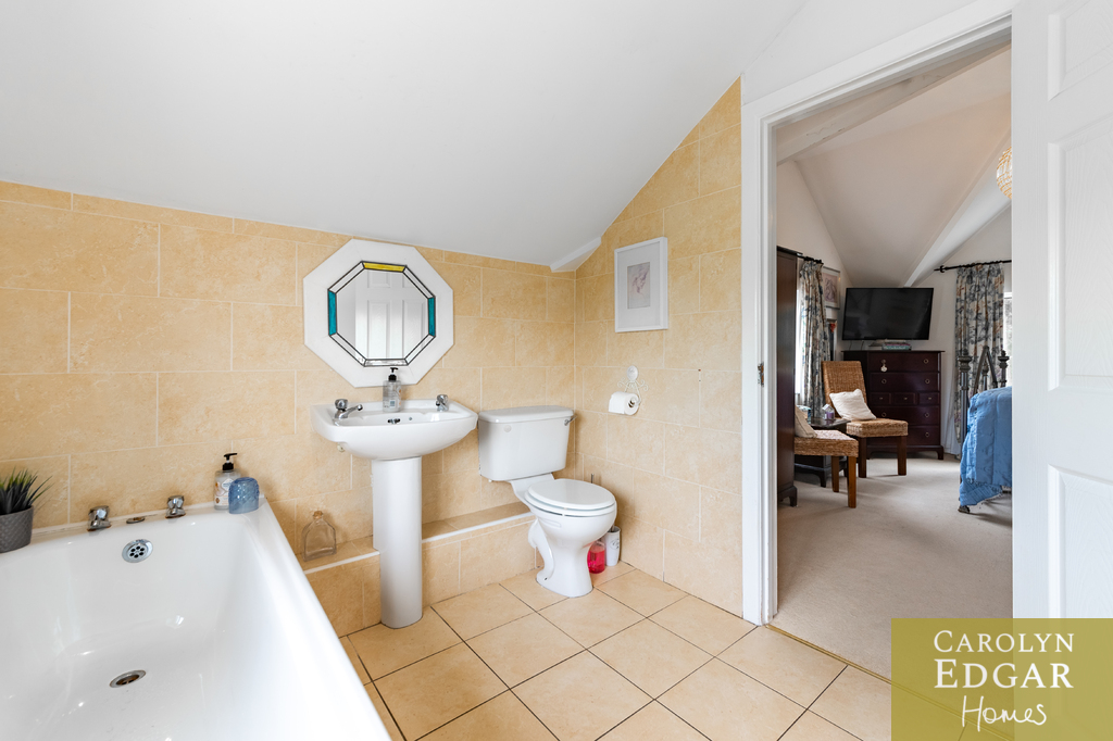 Upstairs are three double bedrooms, the large master with vaulted ceilings and ensuite bathroom and separate modern family shower room.