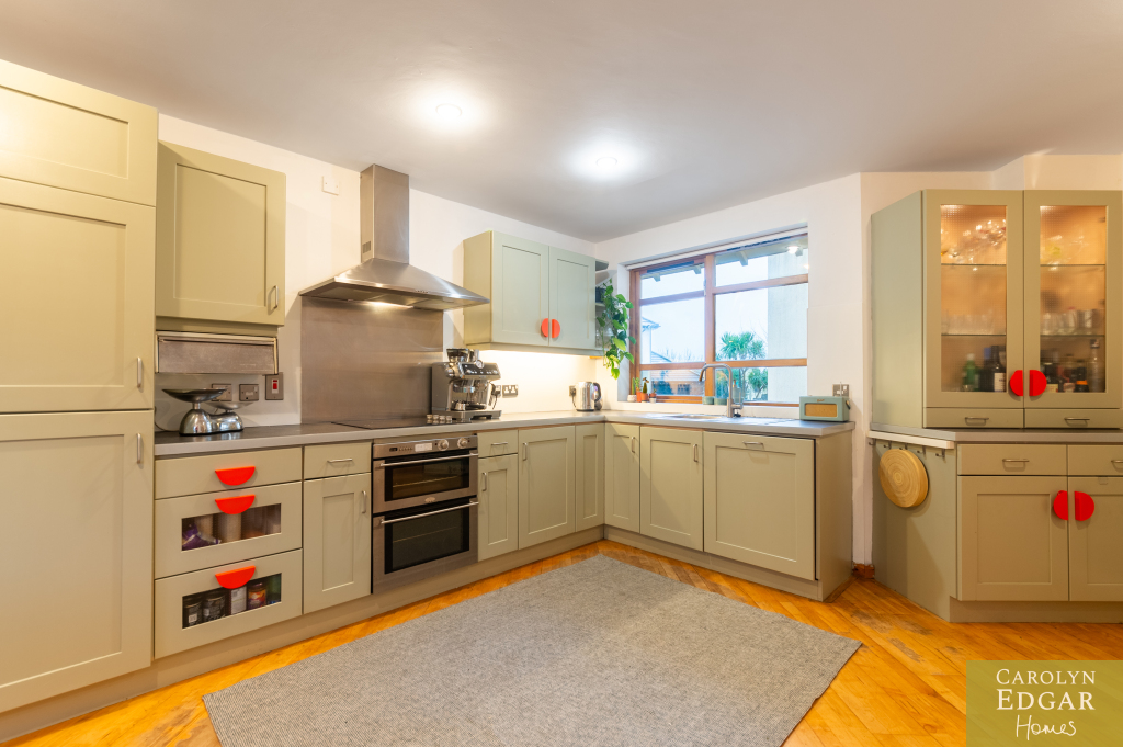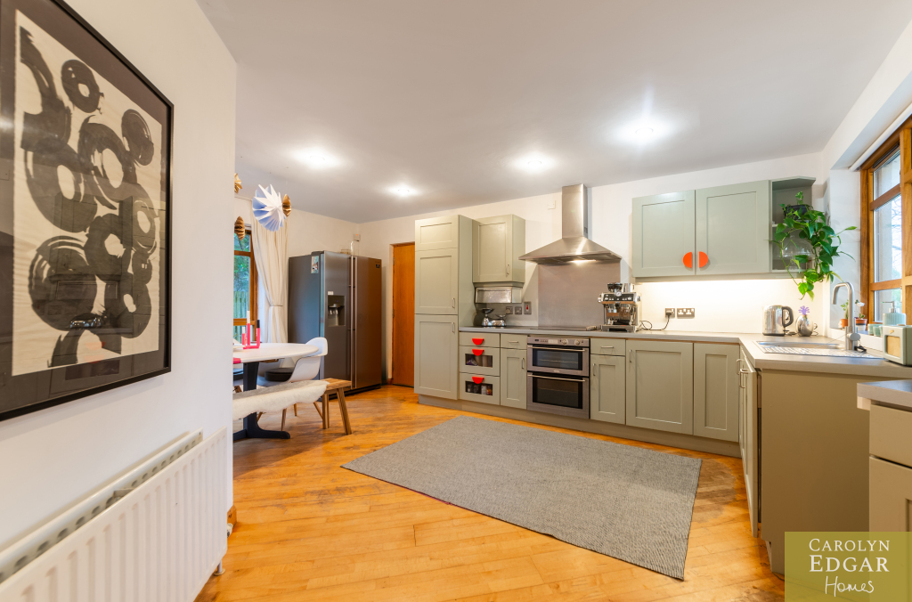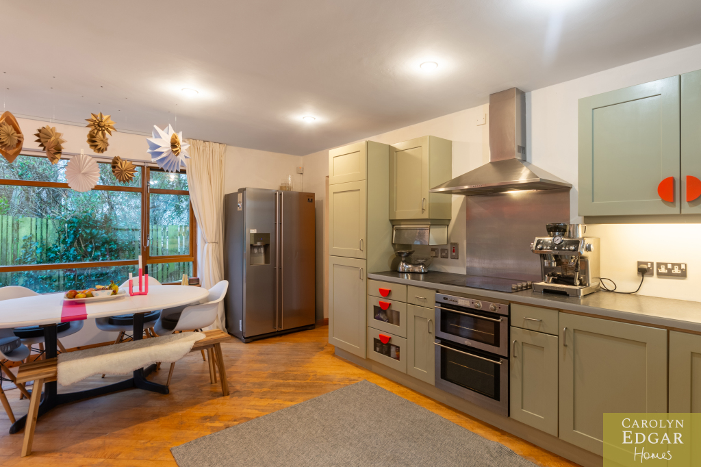 Modern Fitted Kitchen with Casual Dining Area Overlooking Gardens