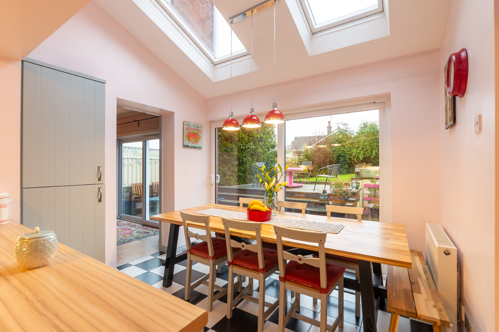 This contemporary and deceptively spacious extended property is set in the much sought-after Carnalea area. Internally the property has been modernised by the current owners to offer bright and perfectly presented accommodation throughout and will appeal a wide range of potential purchasers, including young professionals, families and those looking to downsize due to its versatile living space, with a double bedroom and shower room on the ground floor and its desirable location. With the extra benefit of a fully equipped salon, with utility room, bathroom and own front door will give added appeal to those either looking to work from the convenience of their own home or could easily be converted as an annexe for elderly relatives or older children and teenagers. Within easy reach to fabulous coastal walks, many local amenities and leading local schools, it is also easily accessible to Carnalea train station and major transport and commuter links. Downstairs comprises of welcoming hallway, extensive lounge overlooking the rear gardens with French doors out to the paved sun terrace, wonderful open plan kitchen with contemporary dining area with vaulted ceilings flooding the room with of plenty of natural light, cosy second reception/ family room with wood burning stove and downstairs double bedroom and shower room. The annex/salon is also accessible from the kitchen and comprises of bathroom and utility room with built in storage. Upstairs there are three well-presented double bedrooms and bathroom. Outside the property has ample driveway to the front and access to the salon. To the rear are sunny private enclosed gardens with paved sun terrace and large grassed area surrounded by mature trees and shrubs providing all the outdoor space required, whether you are pottering in the garden or watching the children while relaxing on the sun terrace.