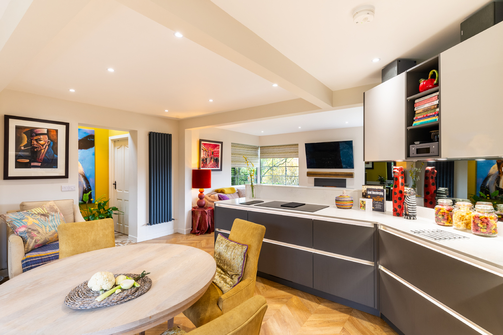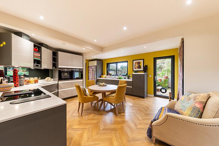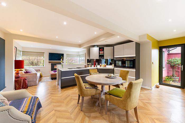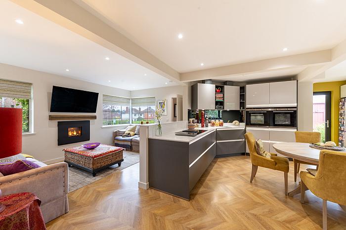 Fabulous Open Plan Living and Kitchen with Bespoke Built in Units and Appliances