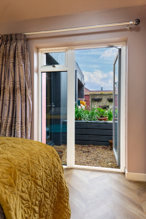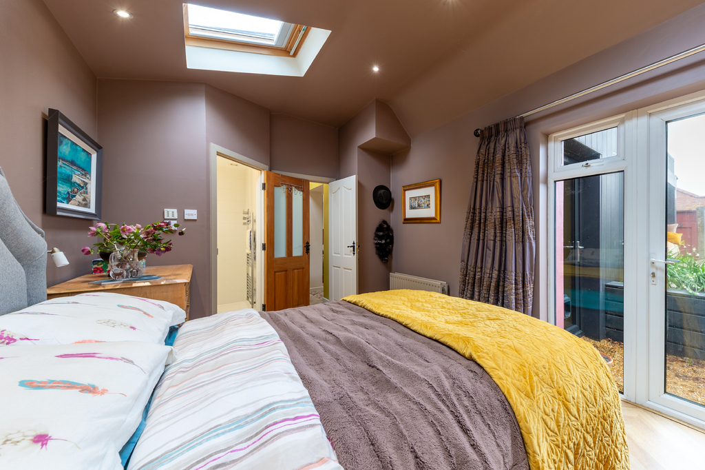 Downstairs Bedroom with French Doors to Sun Terrace and Ensuite Shower Room