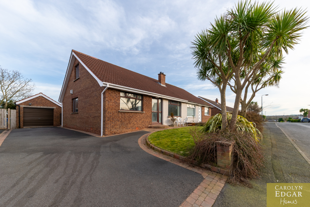 This spacious and bright five bedroom chalet bungalow offers a wealth of versatile and contemporary accommodation throughout with three possible bedrooms and bathroom on the ground floor. Set in a sought-after location just off the Rathmore Road in Bangor West close to a host of local schools, amenities, public transport networks and main arterial routes to Belfast and Bangor Town Centre will appeal to those looking for flexible living space, from expanding families, those looking maybe looking for adaptable accommodation for elderly relatives to those experiencing difficulties with stairs. Split over two levels the ground floor comprises of bright entrance hallway, spacious lounge with feature open fireplace, large fitted kitchen with casual dining area , three bedrooms, two with built in robes and downstairs bathroom. Upstairs there are two large double bedrooms and shower room. Outside the property has private enclosed gardens laid in lawn to the front with ample driveway and access to garage and to the rear are low maintenance private enclosed paved gardens with sun terrace ..