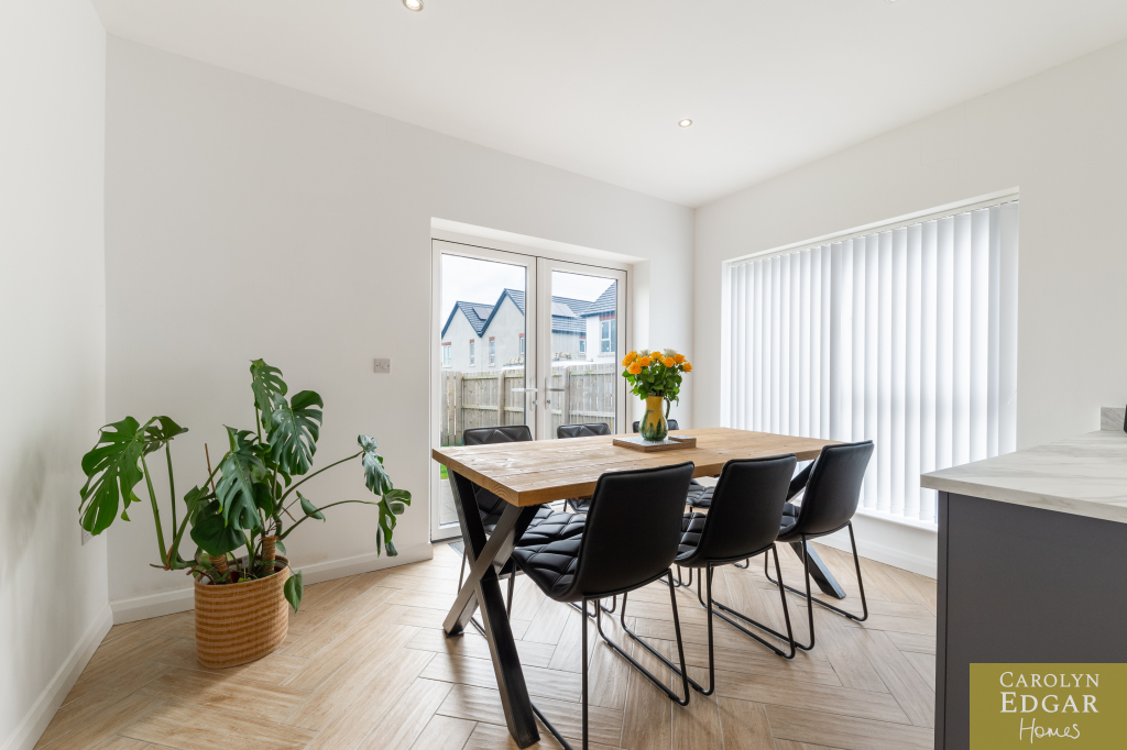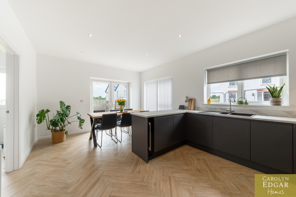 Set in on a generous corner site in this popular development this recently constructed property has been extensively updated by the current owners with many extra added features and upgrades which include herringbone floor tiling, extended kitchen and appliances as well as bathroom upgrades and will have great appeal due to its cool contemporary interior and convenient location within easy commuting to Bangor, Belfast and Newtownards as well as many major shopping centres ,retail parks and local amenities close at hand. Internally the property comprises of a bright entrance hallway, spacious and modern dual aspect lounge with feature wood burning stove, extensive luxury fitted contemporary kitchen with breakfast bar and many extra built-in appliances and features including double oven and black Franke sink, open to casual dining area, separate utility room and handy downstairs bathroom. Upstairs, there are four perfectly presented bedrooms, master with modern ensuite shower room and separate contemporary family bathroom. Outside the property has off-street parking to the side for two cars and sizeable private enclosed sunny gardens to the side and rear, laid in lawn