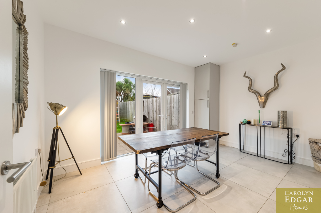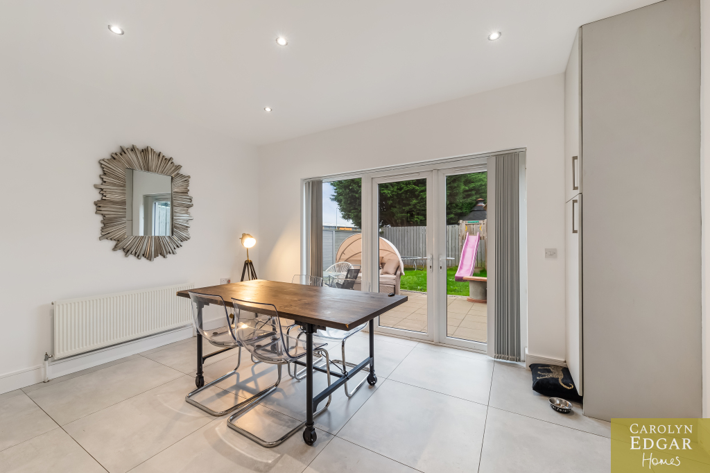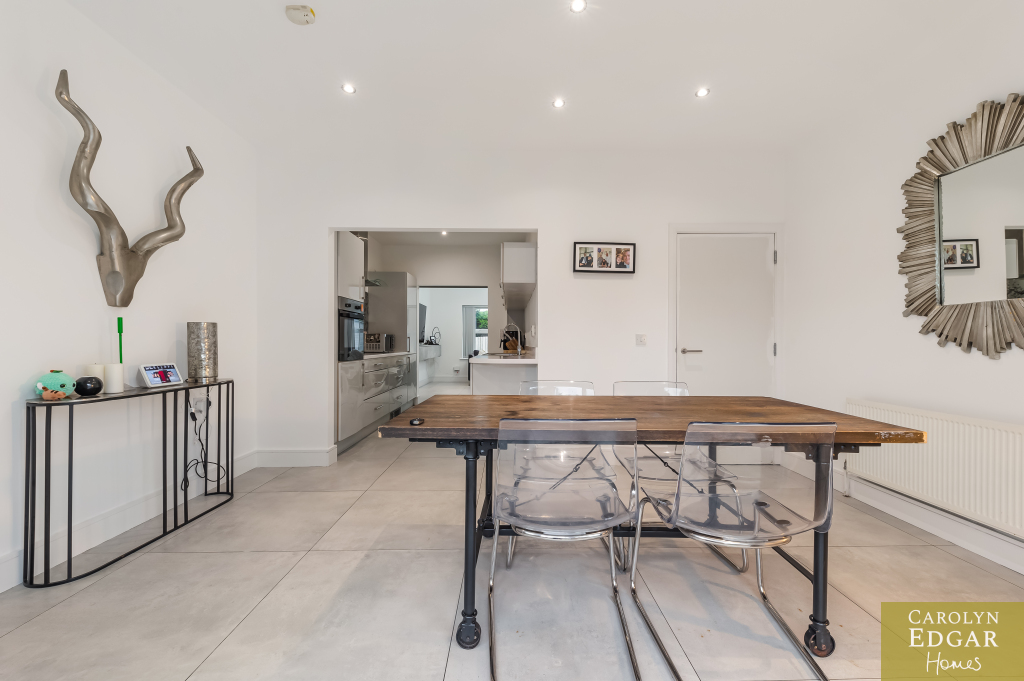 Open Plan Dining and Kitchen Area with Built in Appliances