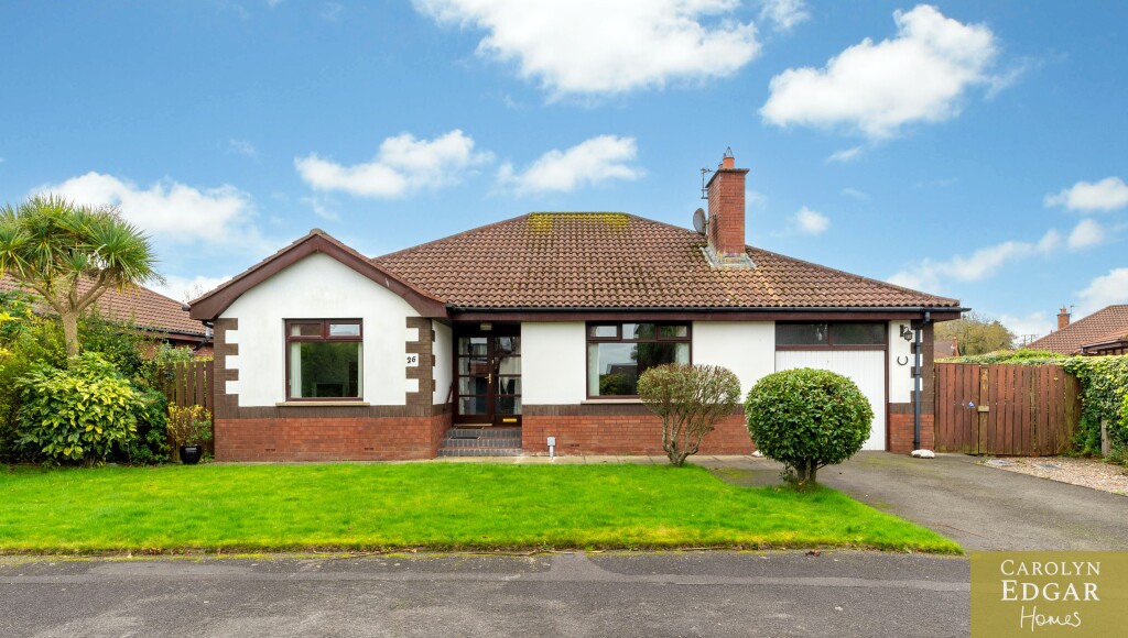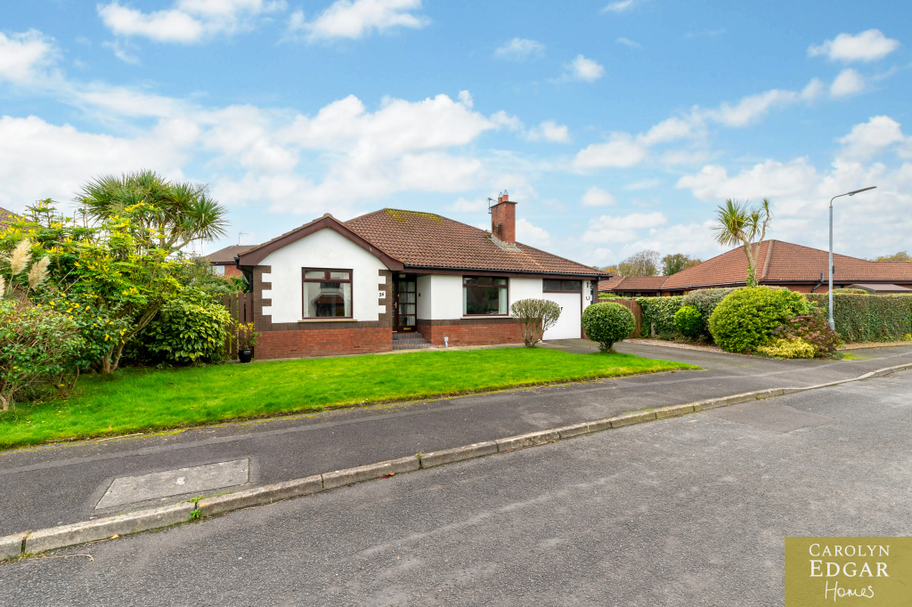 This spacious detached bungalow offers a wealth of bright and well maintained accommodation throughout in this popular development. Situated in a convenient location within easy access to main arterial routes to Belfast and beyond whilst Bangor Town Centre and Newtownards are just a short distance away as well as many major shopping centres, retail parks and local amenities. Internally the property comprises of, covered brick veranda, entrance hallway with double storage cupboard/cloaks, large lounge with brick fireplace with electric fire inset, second reception room/family room, Beechwood fitted kitchen with an ample range of high and low level units and casual dining area with access to garage with utility area. Furthermore are three double bedrooms, master with ensuite and large family bathroom. Outside the property has tarmacked driveway to the front with access to garage, and ample private enclosed gardens to the sie and rear laid in lawn and mature trees and shrubs, just a perfect space and size whatever your gardening skills