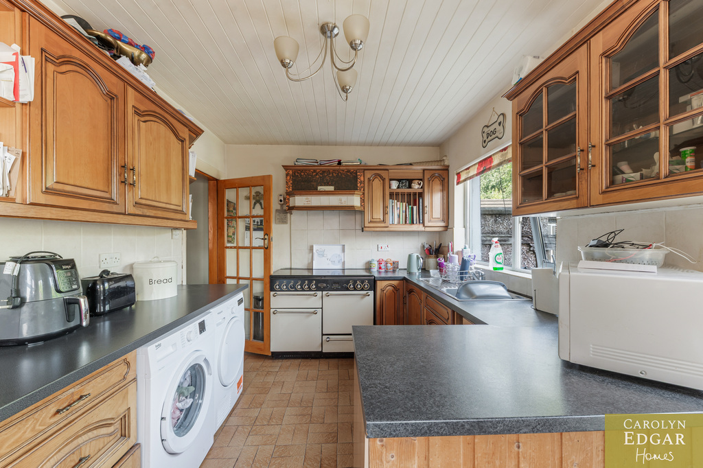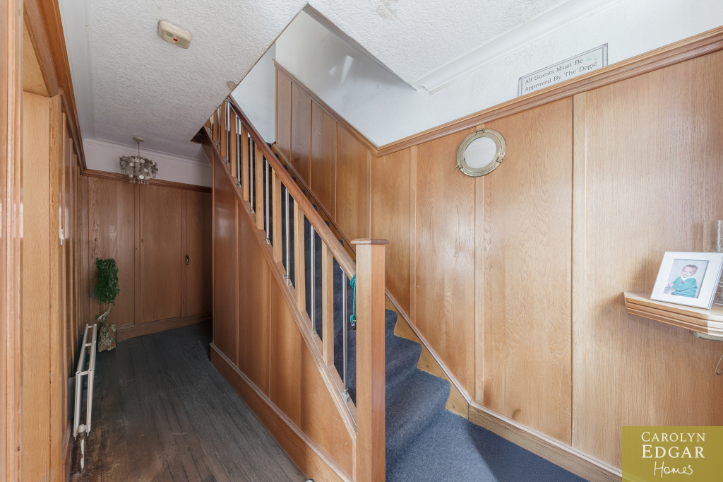 Internally the property features entrance porch leading into hallway, with original wood panelled walls. The family room boasts an open fireplace with an electric inset, creating a cozy atmosphere, and a second larger reception room, also features an open fireplace with an electric inset, The fitted kitchen has an ample range of built in appliances and includes a casual dining area with access to decked terrace overlooking the rear gardens. Upstairs are three bedrooms, two of which are doubles, along with a separate bathroom and WC.