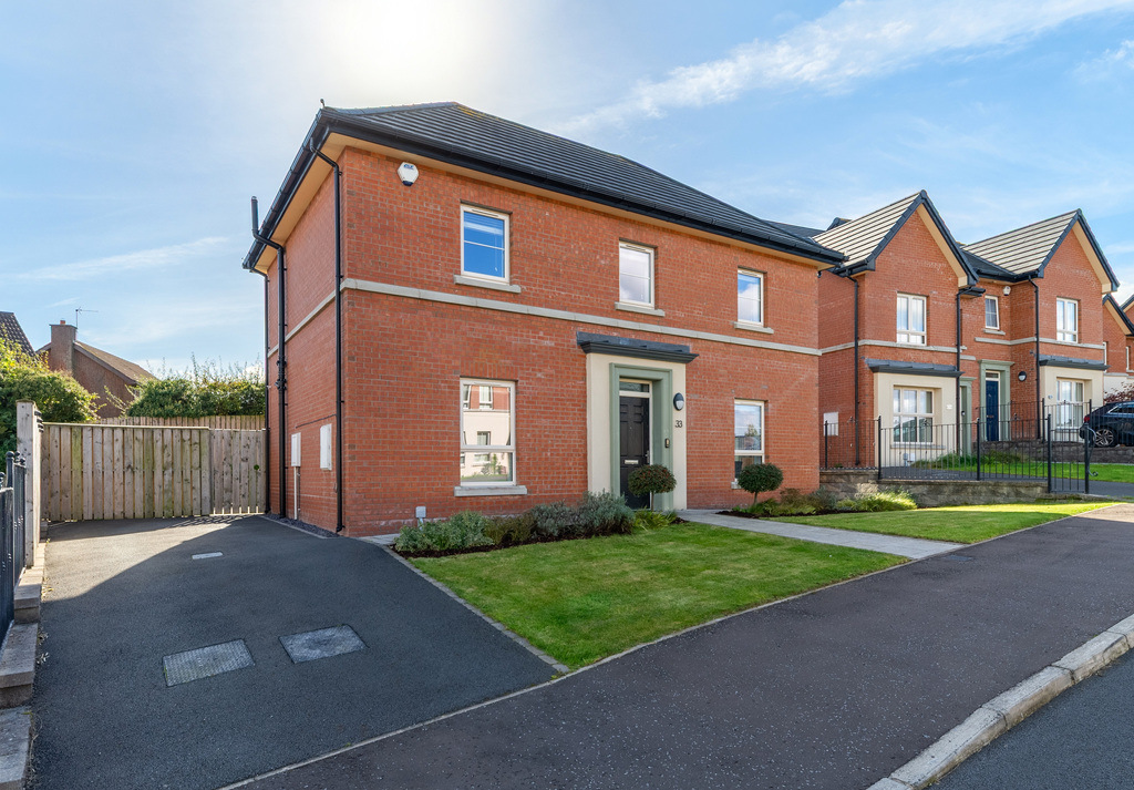 This spacious and stylish double fronted detached property offers a wealth of modern and contemporary accommodation throughout, without the snag list! Set on a generous site in the sought-after Lynn Hall development the property is in a convenient location within easy commuting to Belfast and beyond whilst Bangor Town Centre and Newtownards are just a short distance away as well as many major shopping centres retail parks and local amenities. The property comprises of bright entrance hallway, modern and spacious dual aspect lounge with French doors leading out to the sunny rear gardens, contemporary open plan kitchen an extensive range of modern built-in appliances and units, feature centre island, casual dining area, handy utility room with extra storage and convenient downstairs bathroom. Upstairs there are three immaculately presented double bedrooms, including master with ensuite and a contemporary family bathroom. Outside the property has gardens to front and large tarmacked driveway to the side proving ample car parking and to the rear are private well maintained sunny south facing gardens, laid in lawn and paved patio area.all making this just the perfect home