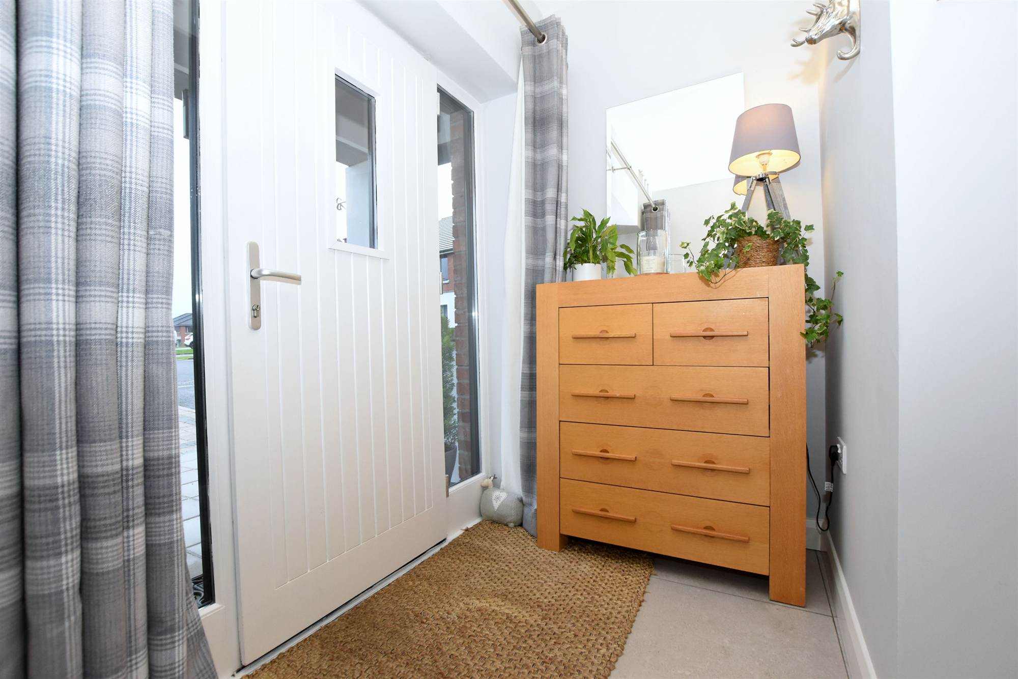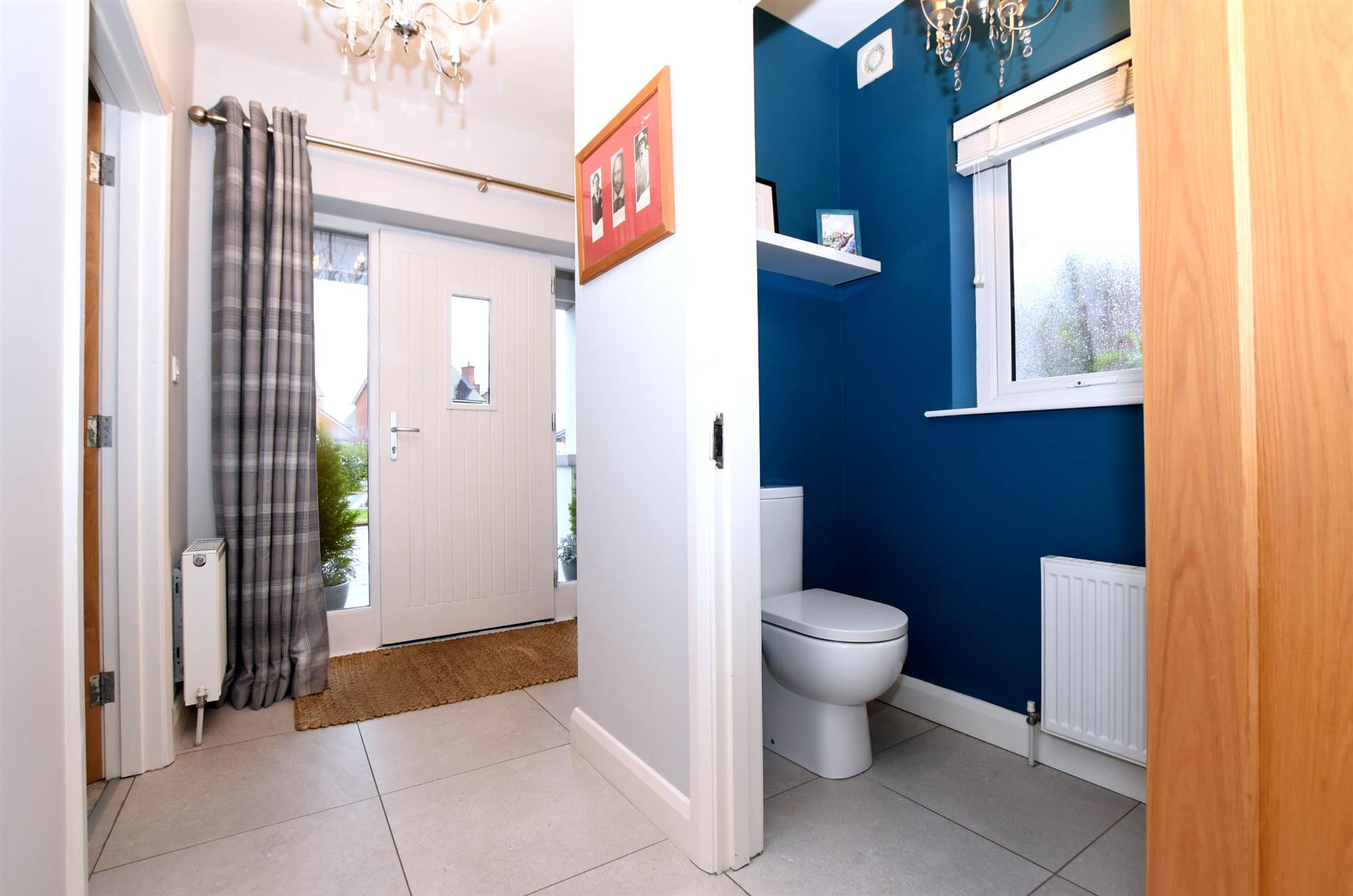 Entrance porch. Entrance hall with privacy glass window and ceramic tiled floor.