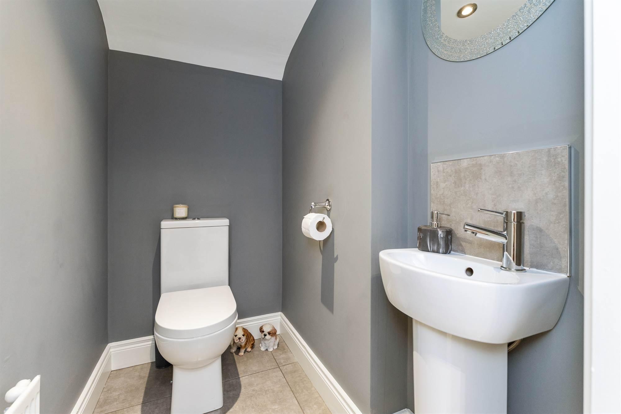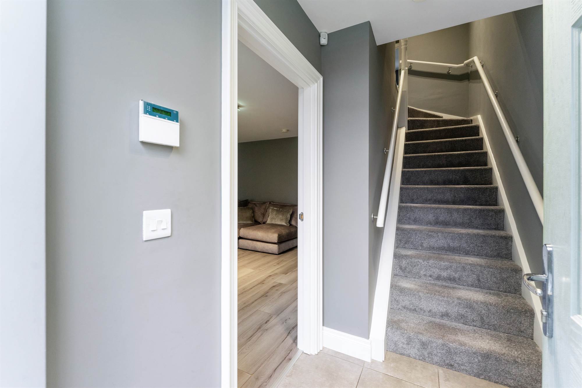 The accommodation comprises of an entrance hall, a spacious living room, fitted kitchen with casual dining space, utility cupboard and WC. On the first floor there are three good sized bedrooms (principal bedroom with ensuite shower room) and an additional family bathroom. Externally there is a private, landscaped garden laid in lawns with paved patio space to the rear. To the front is a driveway with space for multiple cars. The property benefits from gas central heating and double glazed windows.