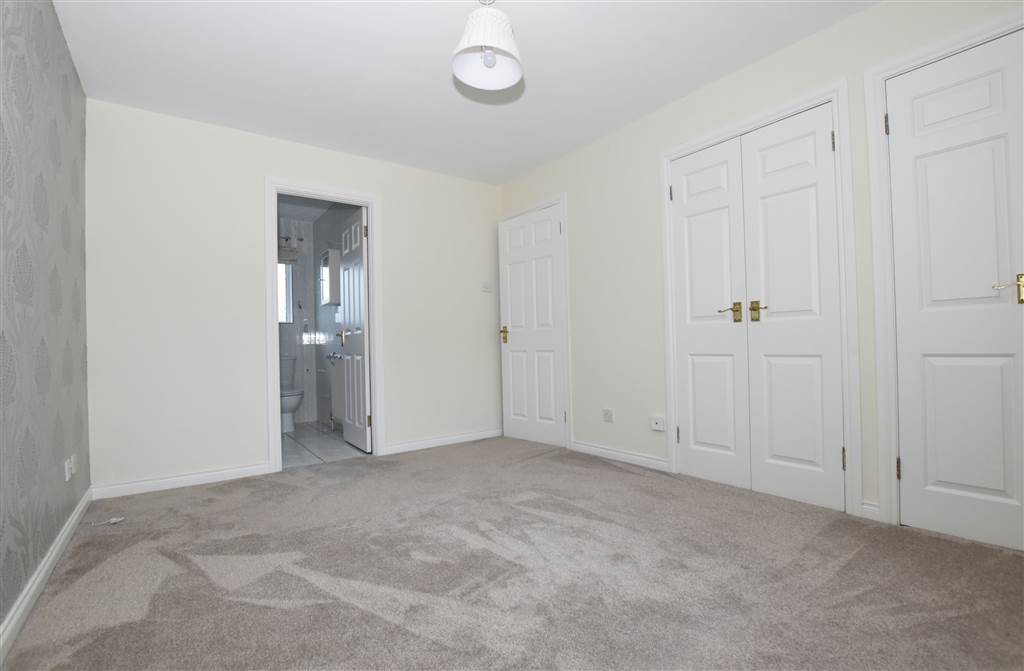 Large bedroom with built in storage cupboards and an en suite.