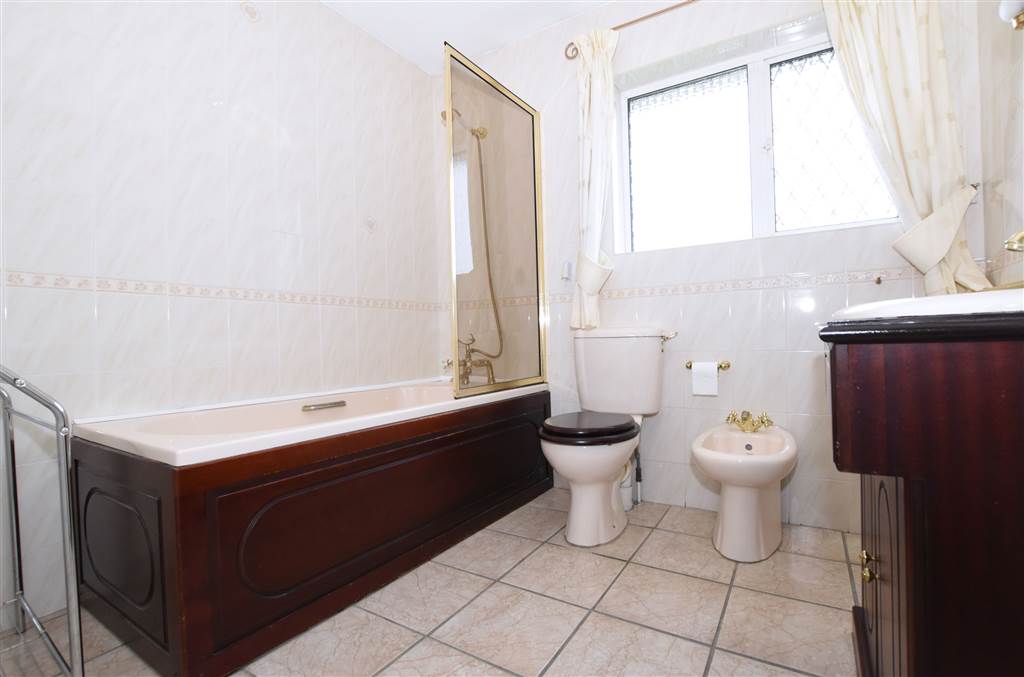 Another great sized family room with a fitted kitchen, breakfast bar area and also room for a dining table and chairs. There is a great selection of high and low level units with some display cabinets, an integrated oven and ceramic hob with extractor fan. The stainless steel sink with drainer is complimented with a mixer tap. The spotlights in the ceiling make this a bright kitchen with the window overlooking the back garden and another window over looking the front of the property via the dining room. The floor is tiled and the walls are partially tiled, In the dining section the floor is quality laminate and it also has an electric fire currently installed.