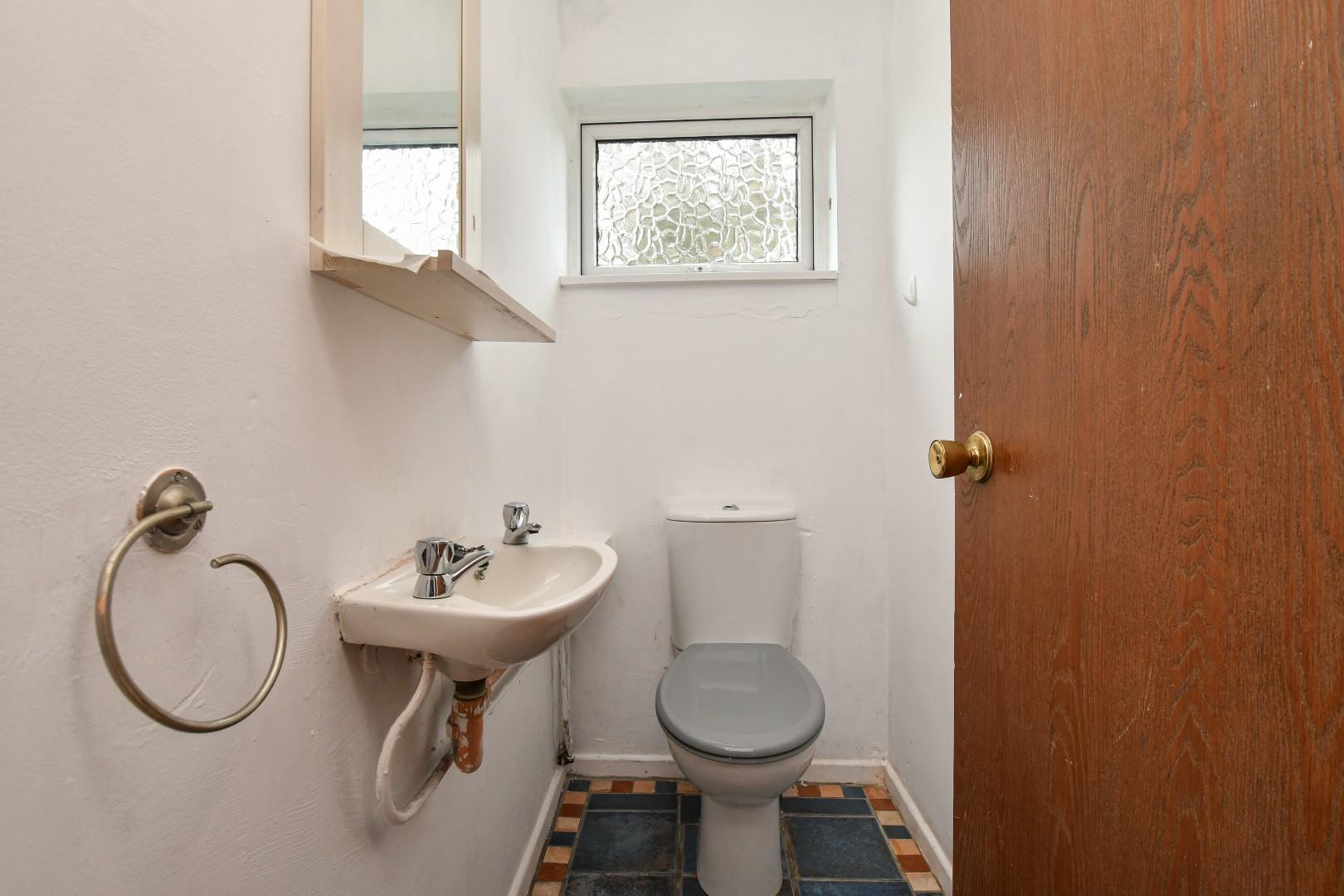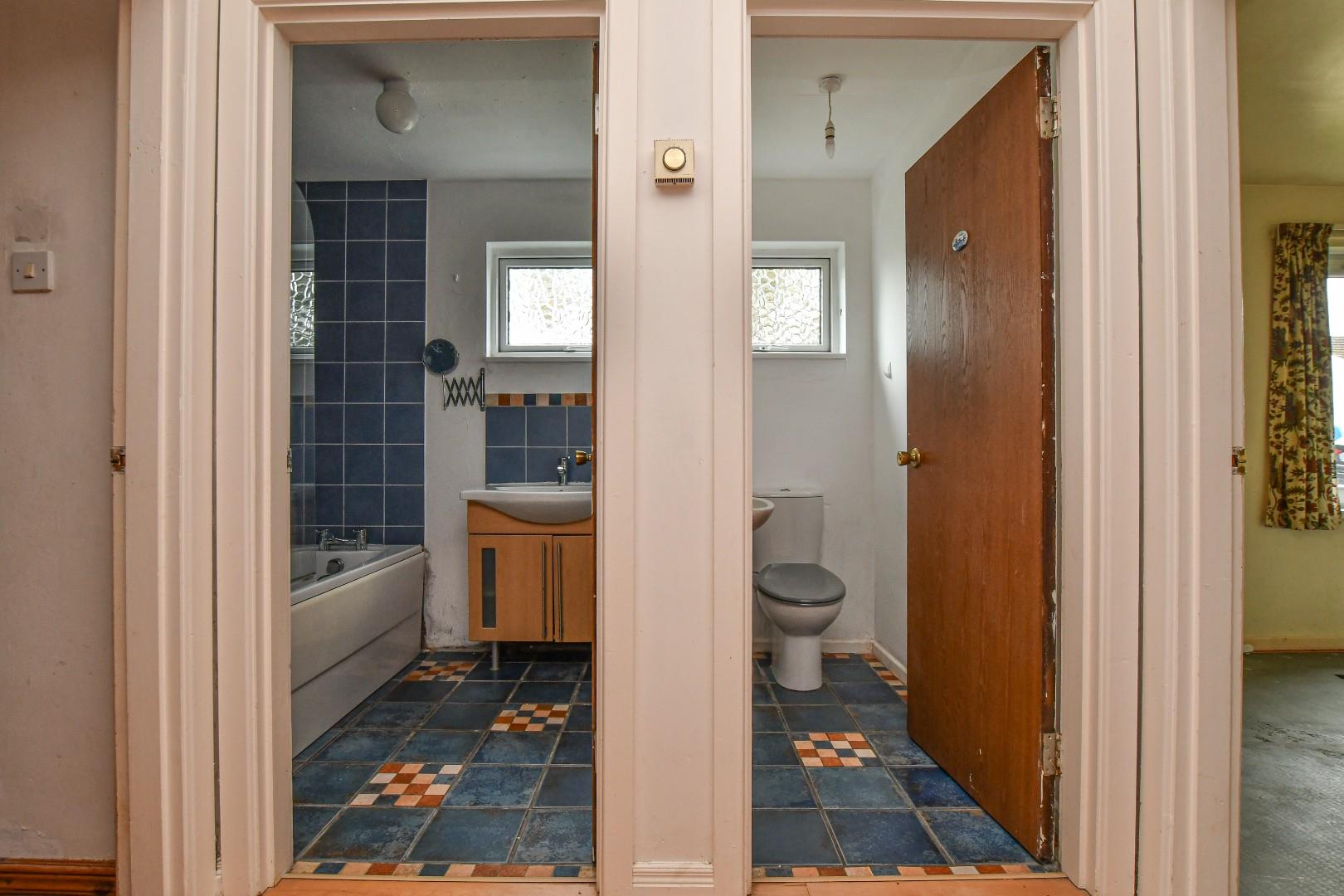Downstairs Bathroom With Panelled Bath And Shower Above. Separate Downstairs WC